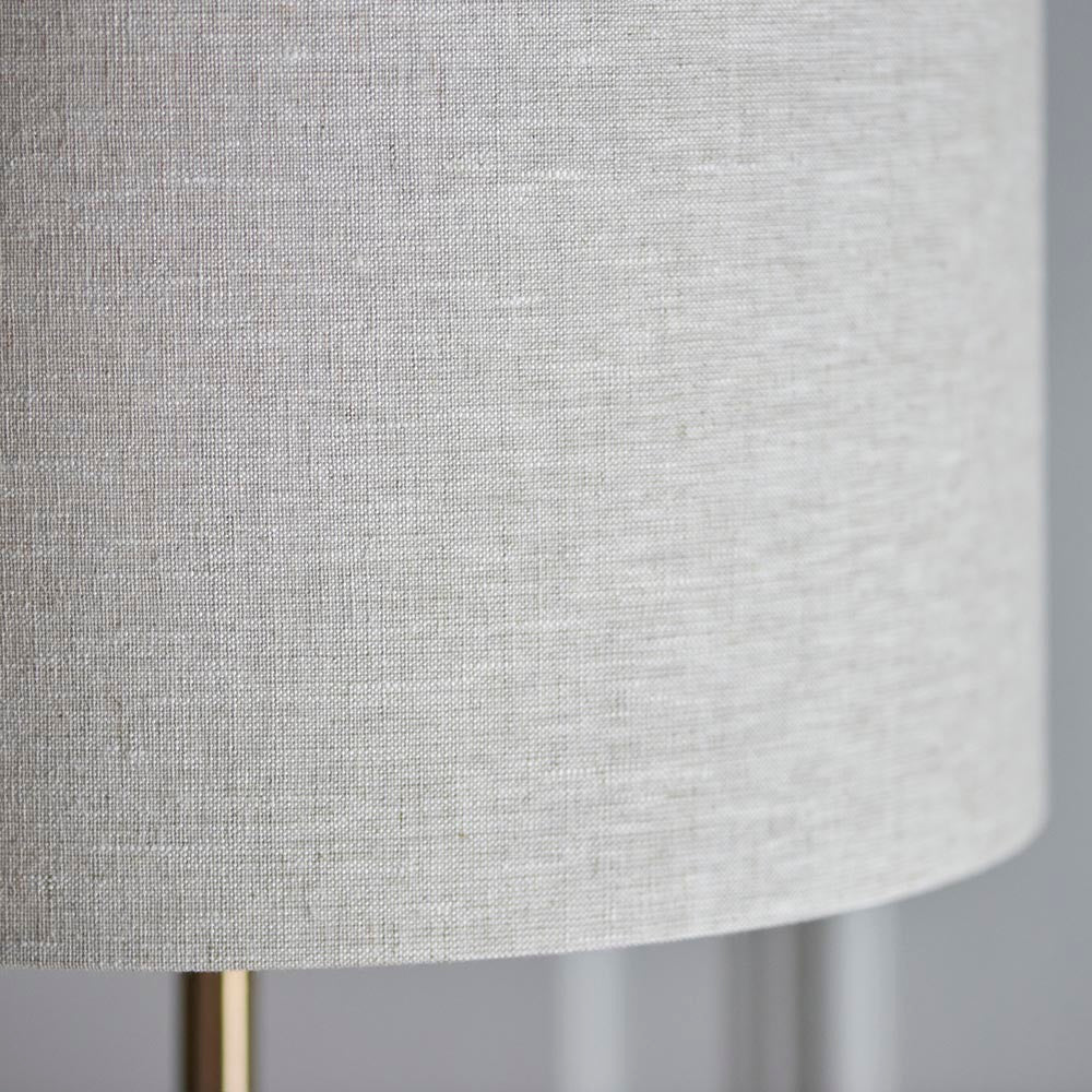 This floor lamp is a sophisticated mix of natural linen fabric with colour matching cotton inner and vintage brass plated metalwork. This statement floor lamp is the perfect timeless addition to modern and classic homes of today.