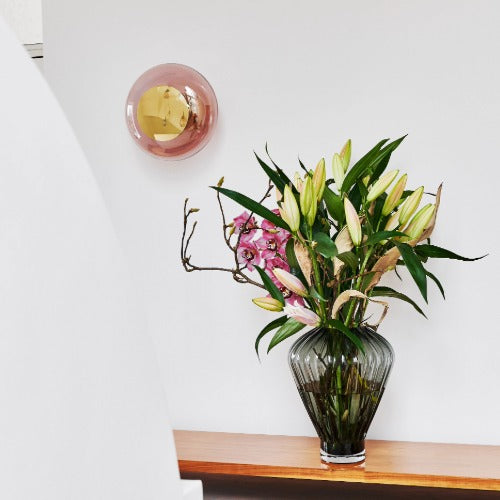 Each piece is handcrafted in Europe from mouth-blown glass and finished with solid brass details in your choice of gold or silver. Refined, compact, and endlessly versatile.
