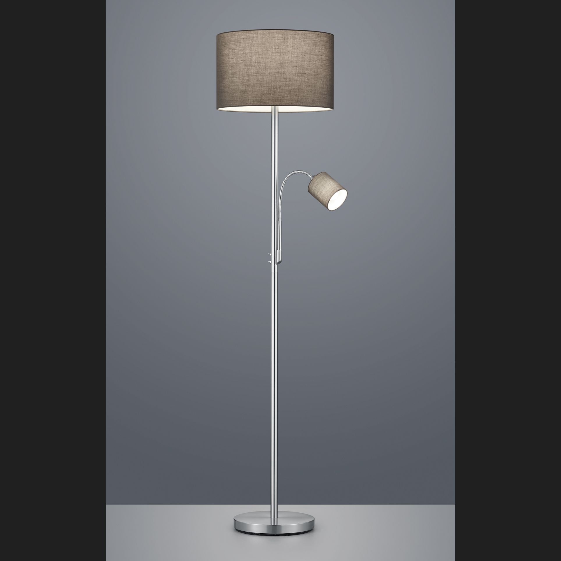 The HOTEL floor lamp has a modern and simple design that comes into its own in the bedroom, dining room or living room. This lamp allows the most inconspicuous corners of your home to shine in new splendour. Ideally, the lamp should be placed next to the sofa, as a flexible reading arm ensures the best possible lighting result in addition to the main light source. This can be directed in a targeted manner so that the desired light pattern can be freely selected. Textile lampshades also provide a soft and gentle light. The lighting can also be switched separately. The light in matt nickel with a grey fabric shade underlines the modern style and can be wonderfully combined. The use of LED light sources is recommended for energy-saving lighting. These are an ideal alternative to conventional halogen light sources and offer high light quality and energy savings of up to 80%. With LED light sources, you also benefit from a long service life and low heat generation while protecting the environment.