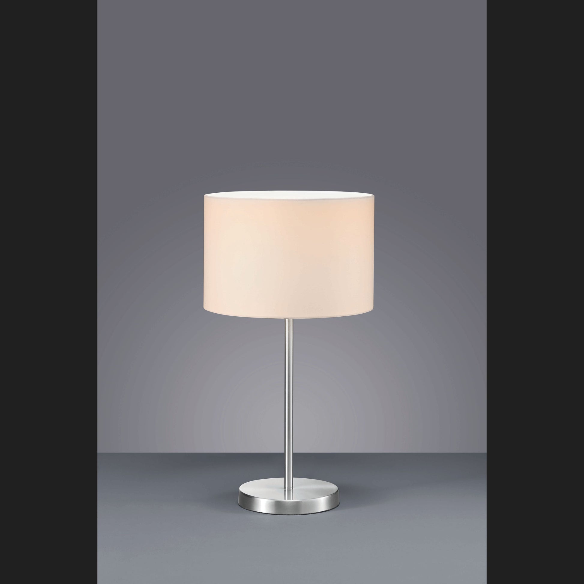The HOTEL stool lamp impresses with its simple elegance. The fabric-covered shade creates an even, glare-free light. Thanks to the classic colour design in matt nickel and the white shade, the light can be combined with many furnishing styles. For energy-saving lighting, it is recommended to use an LED illuminant. These are an optimal alternative to conventional halogen lamps and stand for a high quality of light and energy savings of up to 80%. In addition, LED lamps help you benefit from a long service life, low heat generation and at the same time protect the environment.