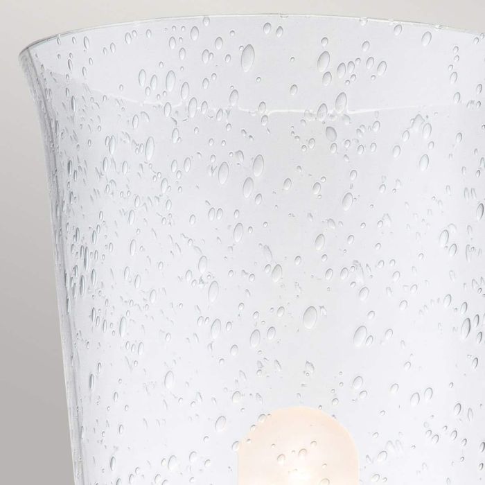 A classic rendition of an early Colonial look, the Huguenot Lake bath lighting collection features a circular motif, hand spun fitters and clear seeded glass. Fixtures may be mounted in the up or down position. IP44 bathroom rated.