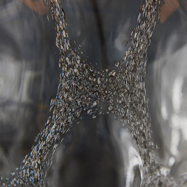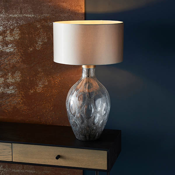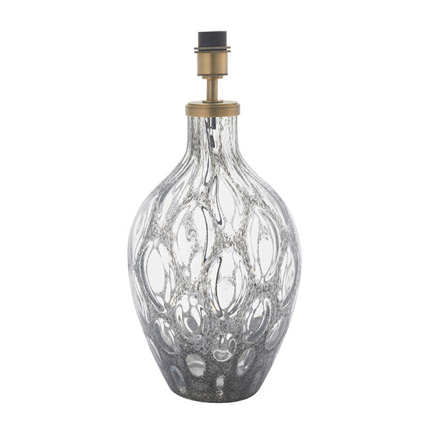 A statement textured artisan glass table light base with matt antique brass machined metalwork. Pair with a satin fabric shade to complete the look.
