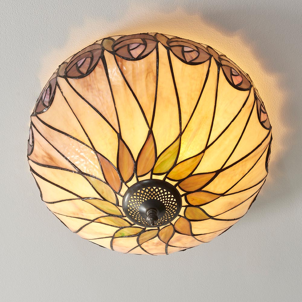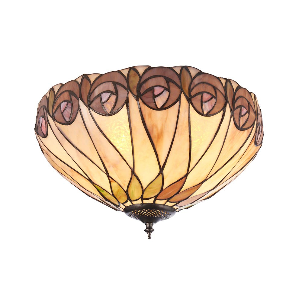 This ceiling flush light was inspired by designer Charles Rennie Mackintosh and mimics his famous rose design. Dimmable and compatible with LED lamps