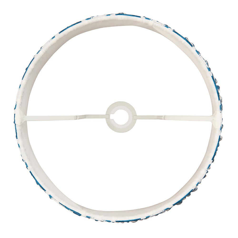 40cm tapered shade with reversible white gimbal. Unique Ikat pattern design in marlin blue with taped edge detailing and plain inner lining.Perfect when paired with one of our beautifully decorative floor lamps or cable sets.