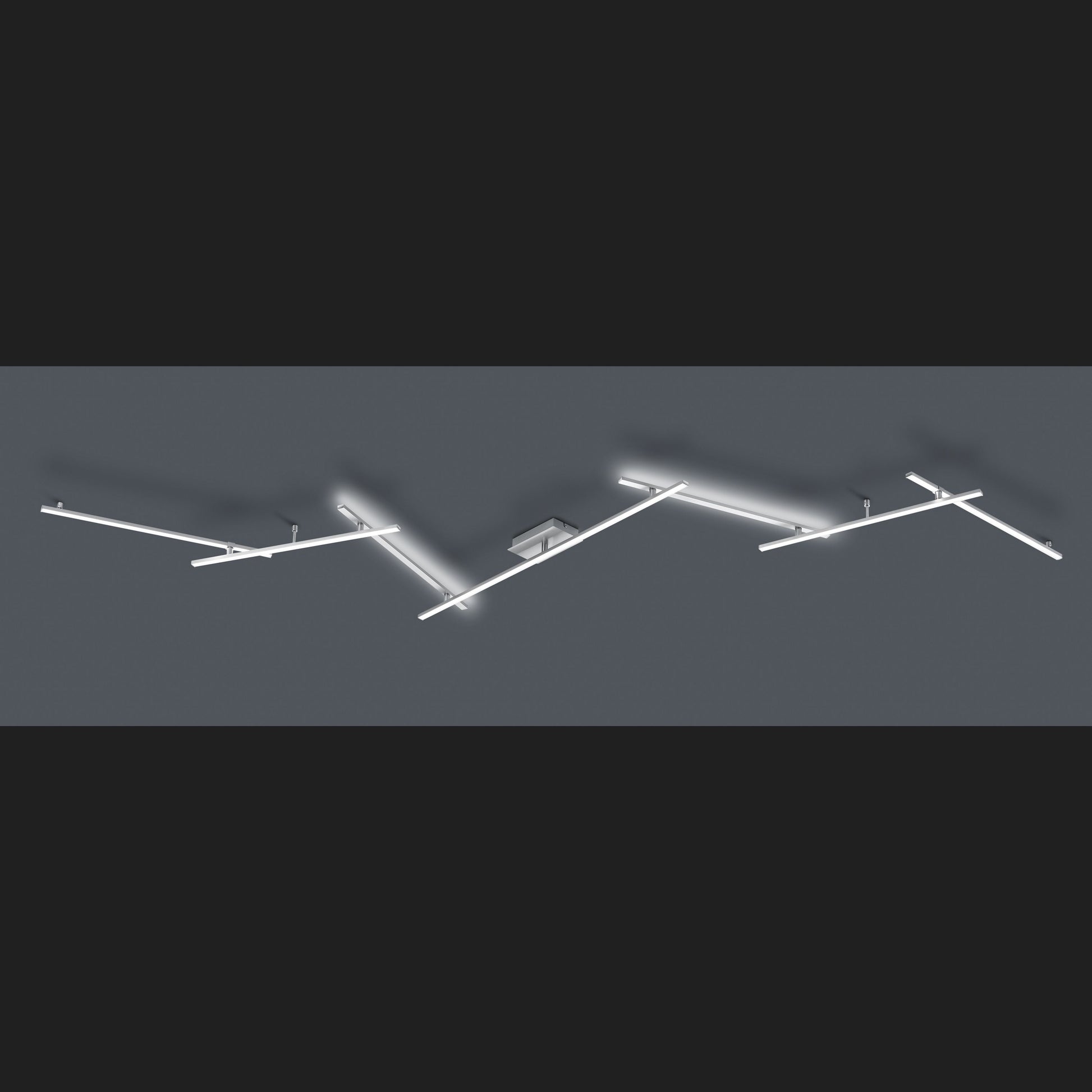Unusual and individual - the INDIRA wall and ceiling light. This unusual luminaire has five elements with the light-emitting surface facing downwards and two elements with the light-emitting surface facing upwards. In this way, the luminaire creates direct and indirect lighting, achieving a pleasant light intensity. The swivelling elements can be used to create different patterns and achieve a width of up to 345 cm. The INDIRA also has a SWITCH dimmer so that the luminaire can be dimmed to three levels using a conventional light switch. The luminaire can be installed as a wall or ceiling luminaire, allowing for various areas of application such as the hallway or a kitchen area. The luminaire is made of metal and high-quality acrylic and can be easily integrated into various colour schemes thanks to its matt nickel finish. In addition, the luminaire features modern LED technology, which is characterised by high light quality and energy efficiency. Compared to conventional halogen lamps, up to 80% of energy costs can be saved. In addition, LED light sources have a long service life, produce less heat and protect the environment.