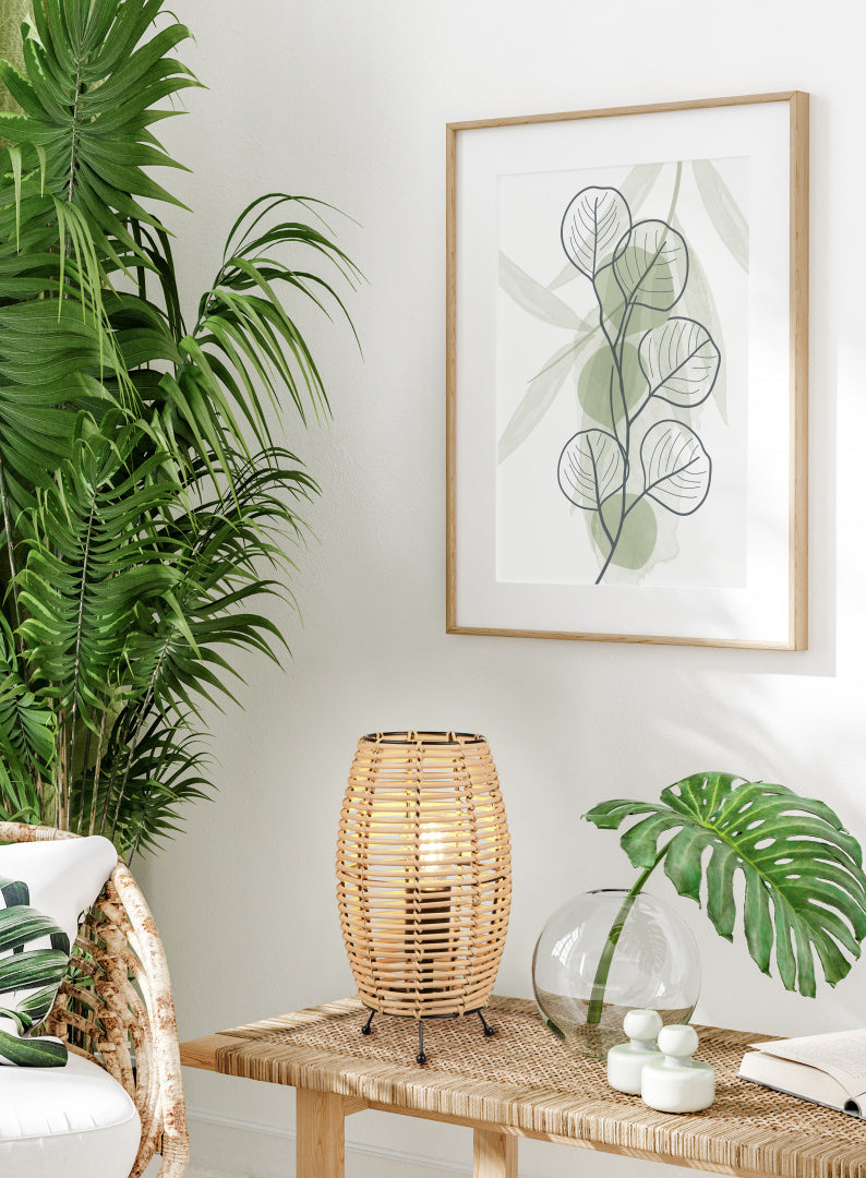 Natural materials are all the rage - and so is the INGA lamp! The table lamp in a timeless wickerwork design is a classic must-have. The lamp looks great on a bedside table in the bedroom or on a chest of drawers in the living room and creates a calming lighting atmosphere. Thanks to the natural rattan and matt black metal, the light fits into all interior styles. For energy-saving lighting, it is recommended to use an LED illuminant. These are an optimal alternative to conventional halogen lamps and stand for a high quality of light and energy savings of up to 80%. In addition, LED lamps help you benefit from a long service life, low heat generation and at the same time protect the environment.