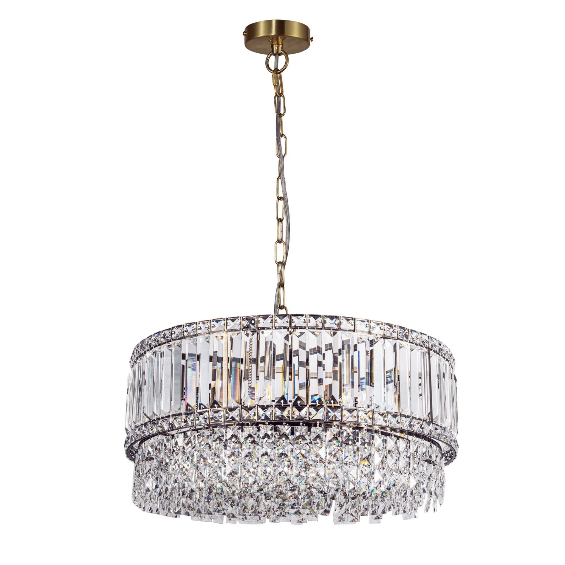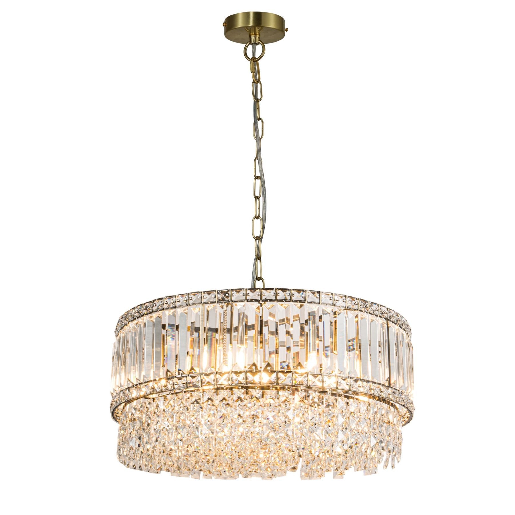 ISLA 9 Light Antique Brass with Crystal Pendant