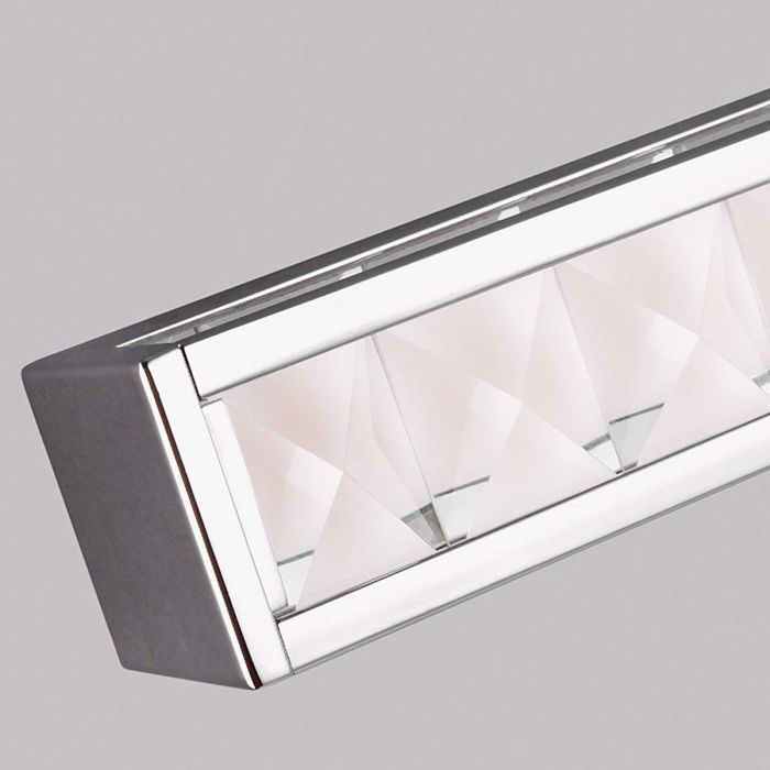 Inspired by fine jewelry, the Jessie LED vanity light uses faceted crystals to enable dramatic reflection of light, softened by a white diffuser behind. IP44 rated for bathroom and can be mounted horizontally and vertically.