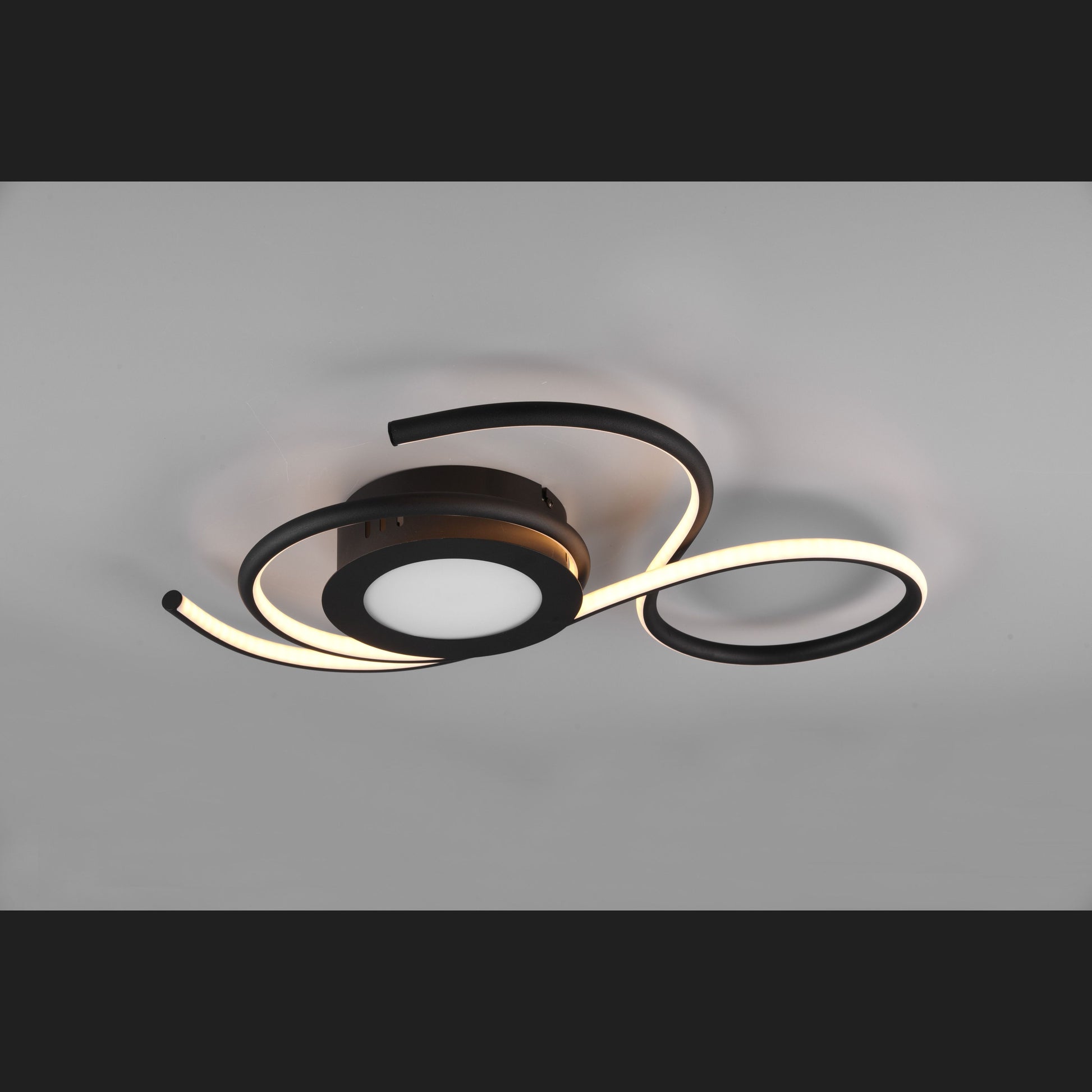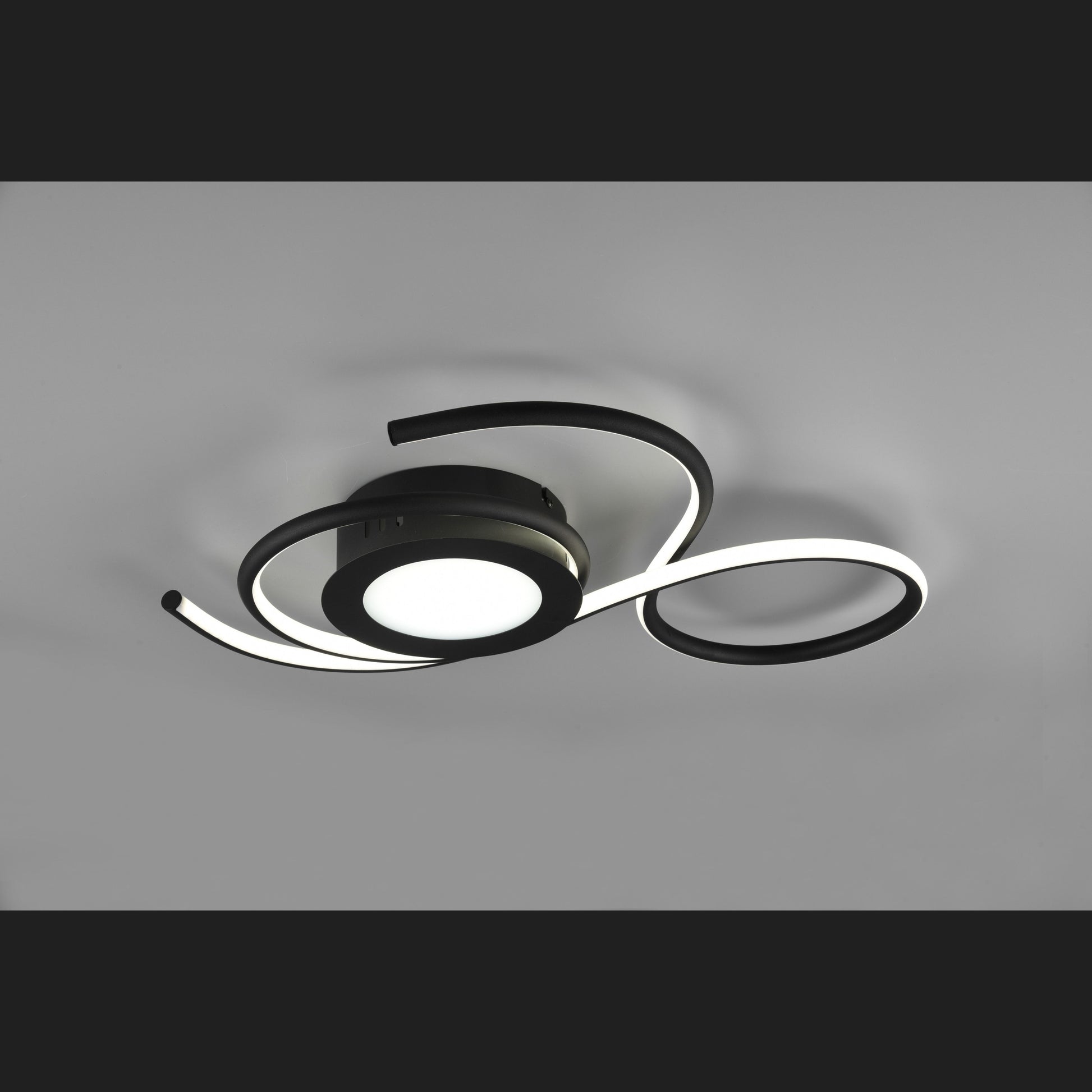 The sweeping JIVE luminaire embodies modern lightness. Stylish and modern designed, the ceiling light fits into different interior styles. By means of remote control the night light function as well as the light intensity and light colour can be adjusted continuously. Thanks to the design in matt black, the luminaire looks timelessly chic in almost all interiors and offers stylish elegance. In addition, the luminaire features modern LED technology, which is characterised by high light quality and energy efficiency. Compared to conventional halogen lamps, up to 80% of energy costs can be saved. In addition, LED light sources have a long service life, produce less heat and protect the environment.