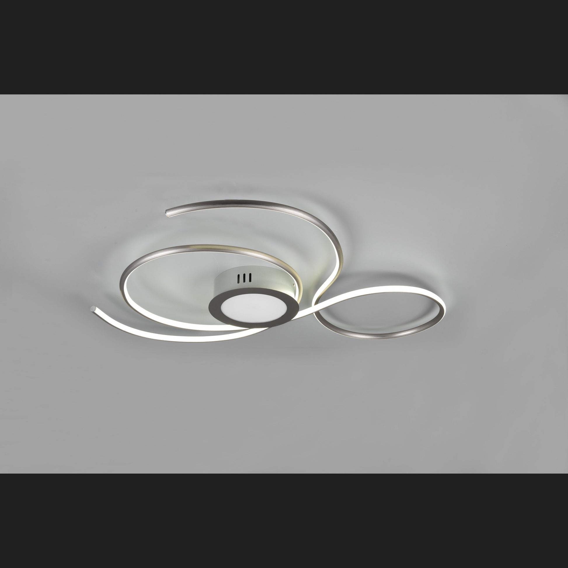 The sweeping JIVE luminaire embodies modern lightness. Stylish and modern designed, the ceiling light fits into different interior styles. By means of remote control the night light function as well as the light intensity and light colour can be adjusted continuously. The colour design in matt nickel makes the luminaire a timeless and elegant living element. In addition, the luminaire features modern LED technology, which is characterised by high light quality and energy efficiency. Compared to conventional halogen lamps, up to 80% of energy costs can be saved. In addition, LED light sources have a long service life, produce less heat and protect the environment.