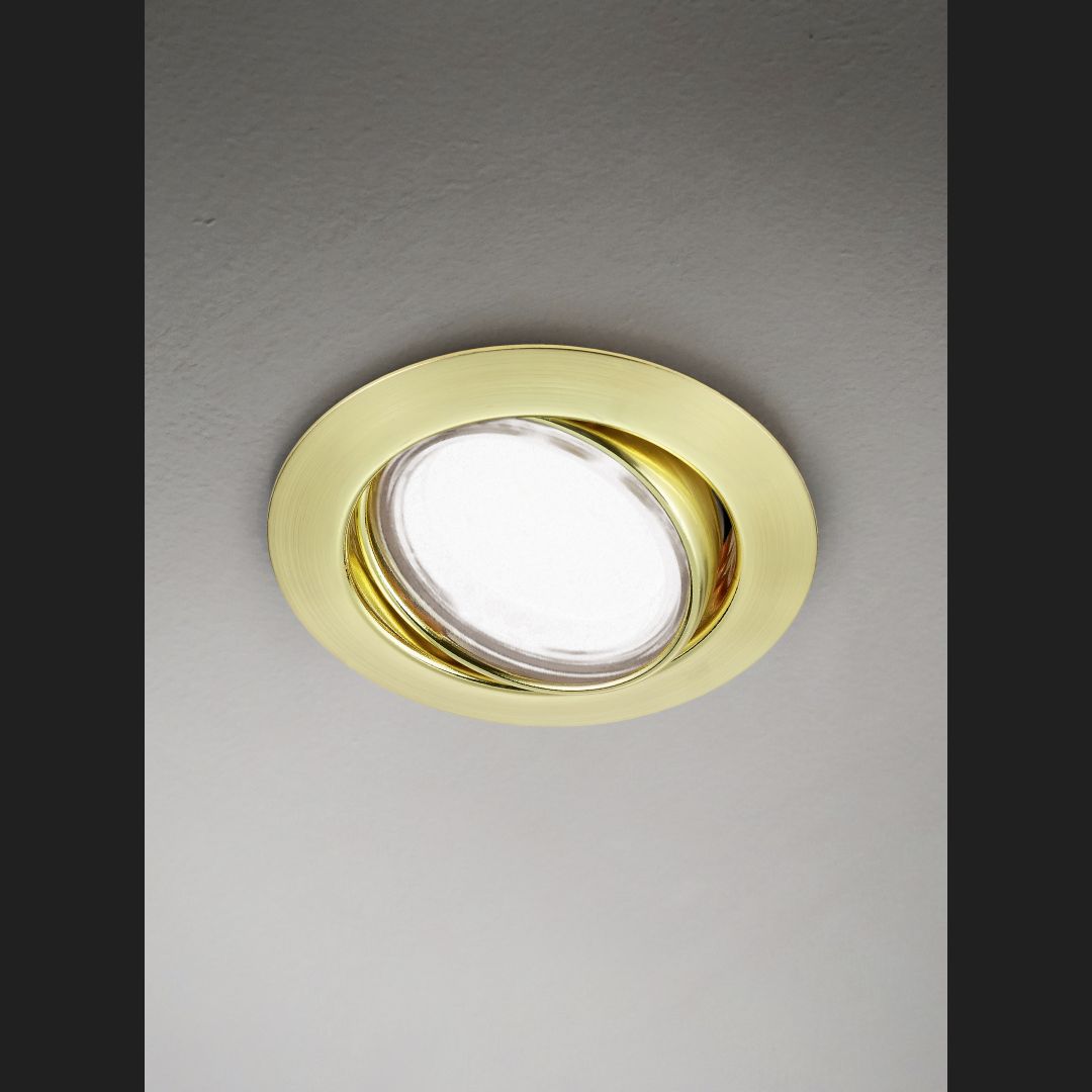 The secret of TRIO recessed luminaires is: timeless.flexible.design-orientated. With the right recessed lights, stylish accents can be set and an atmospheric ambience created. The swivelling recessed spotlights in the JURA range can be used in a variety of ways - whether as ambient lighting or for targeted accentuation of selected areas. The light source is interchangeable, giving you the option of choosing your personal favourite from switchable and dimmable light sources for wide-area or directional light. The round design is timeless and blends easily into a variety of interior styles. The JURA recessed spotlight has a diameter of 82 mm and requires a ceiling cut-out of 68 mm and an installation depth of at least 90 mm. The recessed lights in matt brass give your living spaces a sophisticated and elegant character. For energy-saving lighting, it is recommended to use an LED illuminant. These are an optimal alternative to conventional halogen lamps and stand for a high quality of light and energy savings of up to 80%. In addition, LED lamps help you benefit from a long service life, low heat generation and at the same time protect the environment.