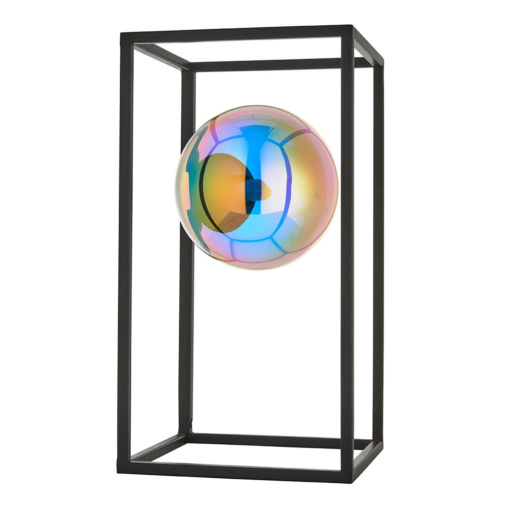 Inventive design with a drop of fun; iridescent spheres appear to float within the black frame of this contemporary table light. Matching floor light also available.
