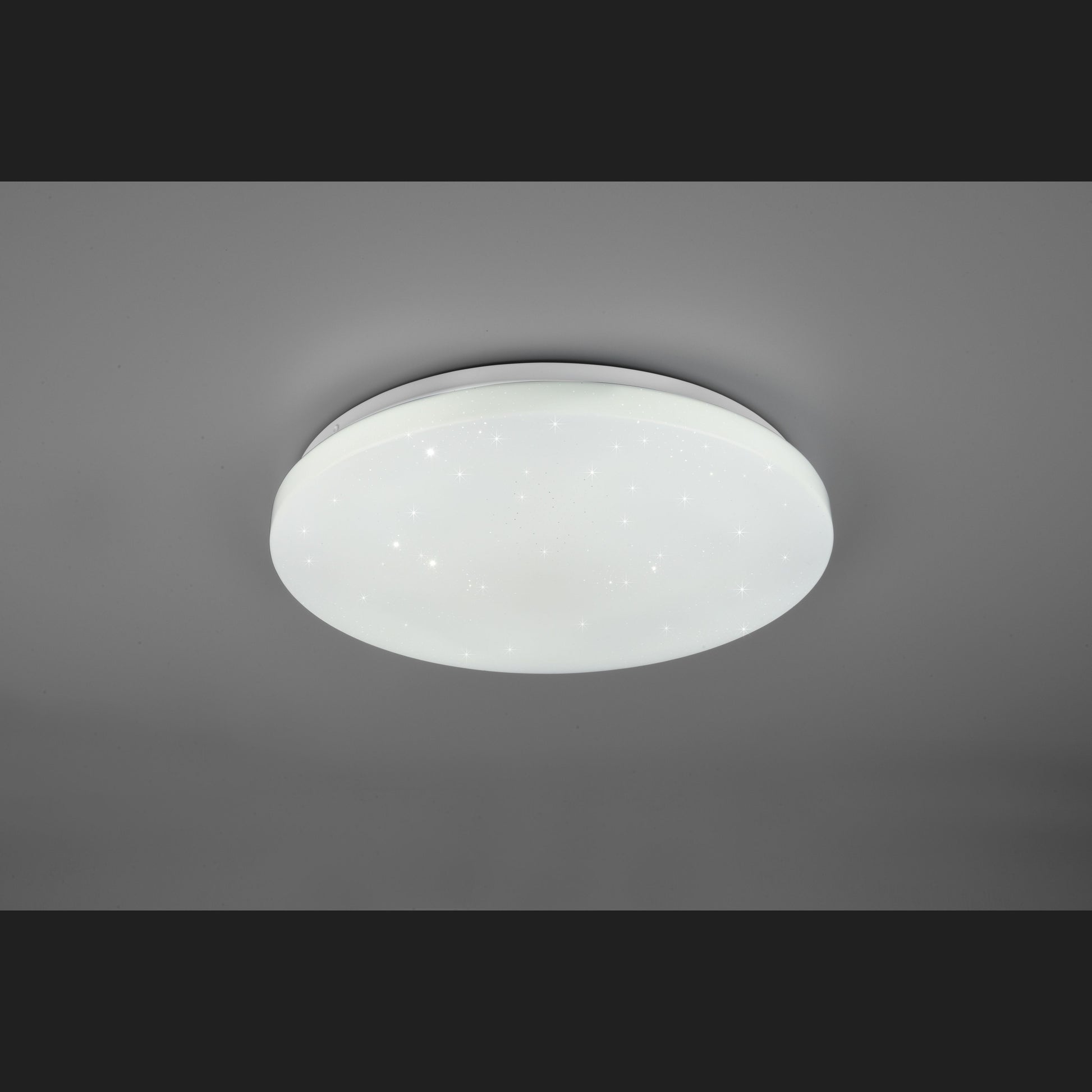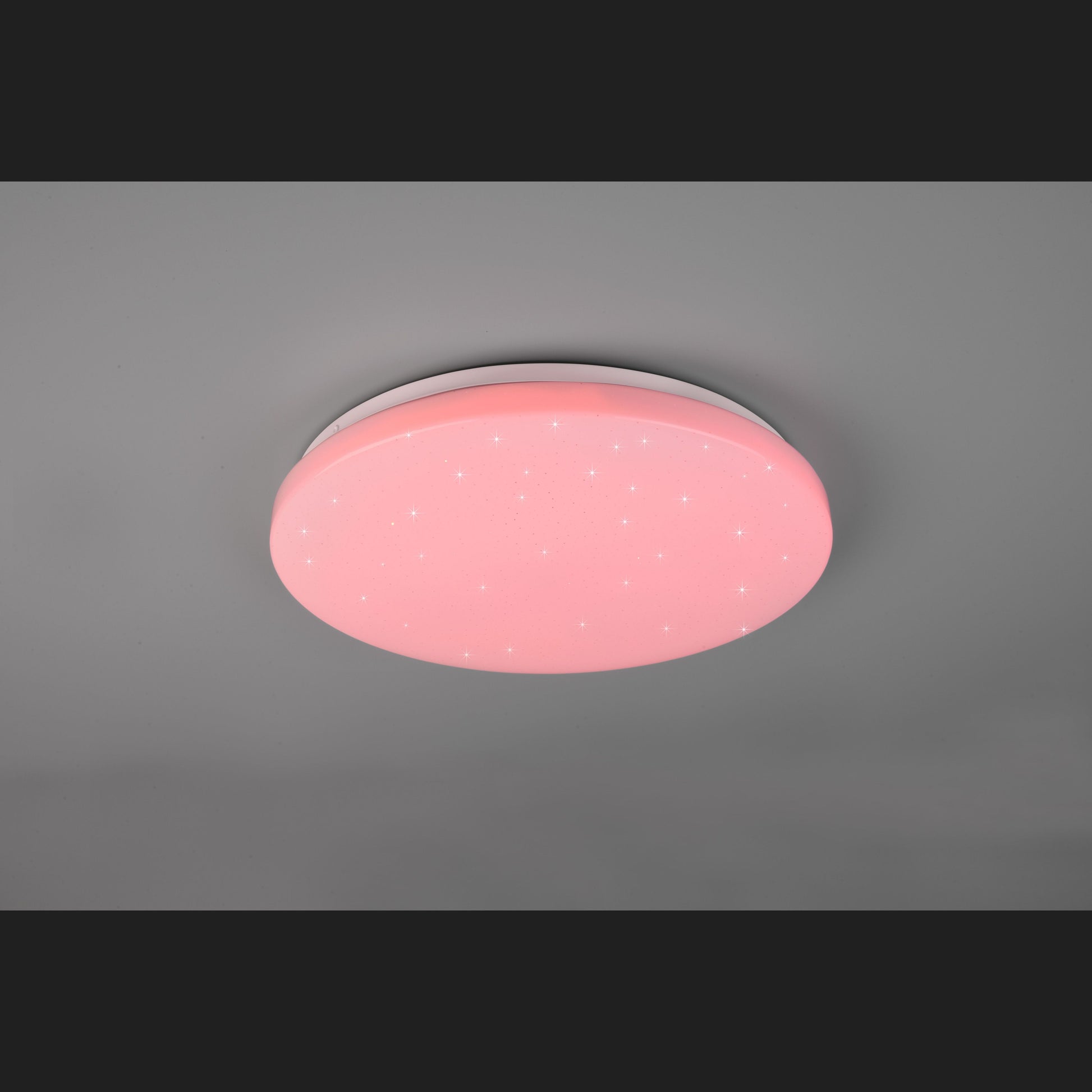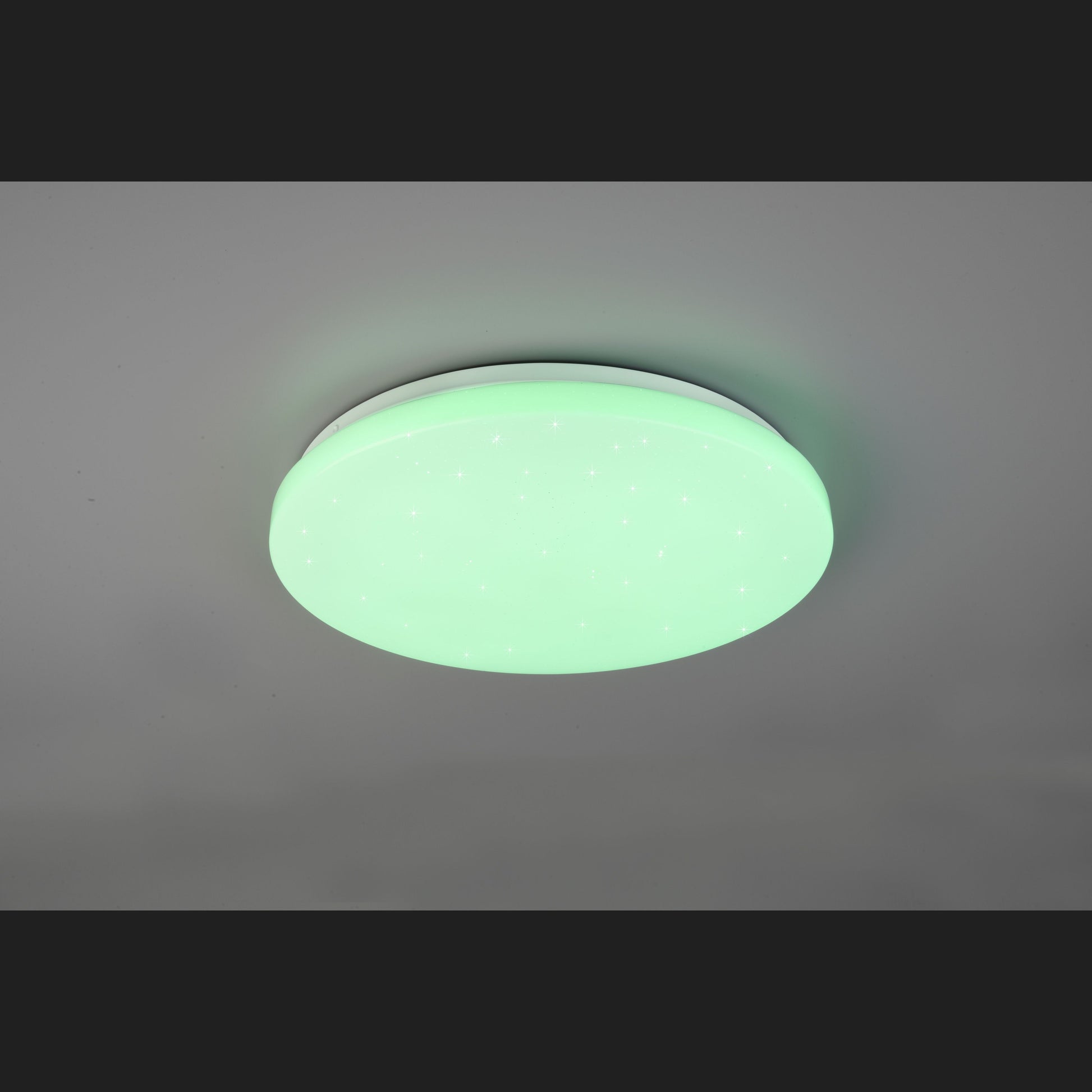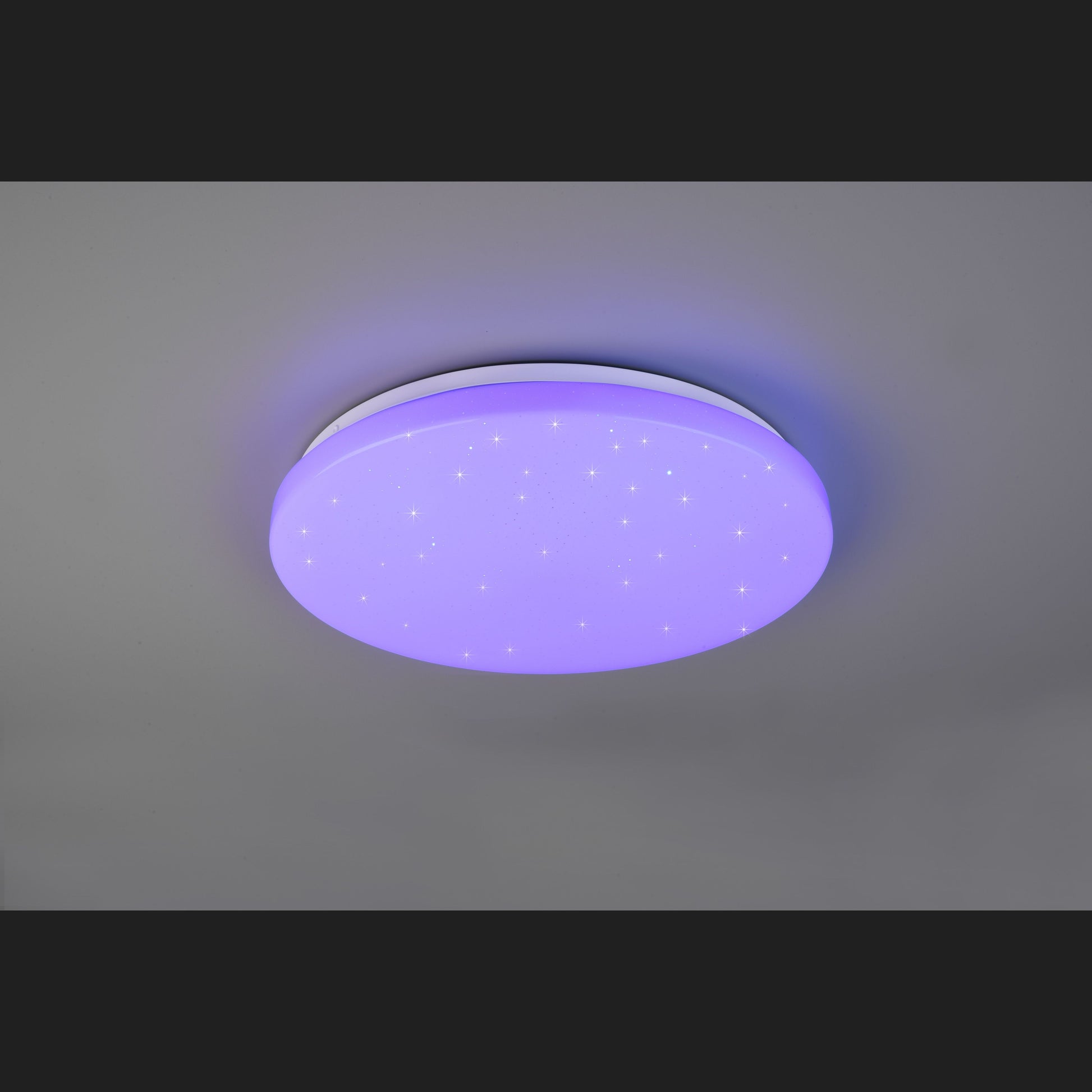 Equipped with a sparkling starlight cover, the RGBW light KIRA is an absolute highlight! In addition, the brightness as well as the light colour can be continuously adjusted. All additional functions can be conveniently controlled via the remote control. The round design in white adapts easily to existing furnishings. In addition, the luminaire features modern LED technology, which is characterised by high light quality and energy efficiency. Compared to conventional halogen lamps, up to 80% of energy costs can be saved. In addition, LED light sources have a long service life, produce less heat and protect the environment.