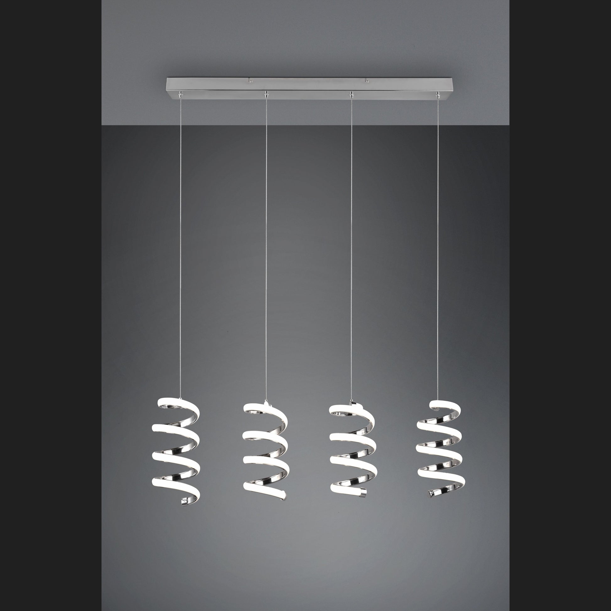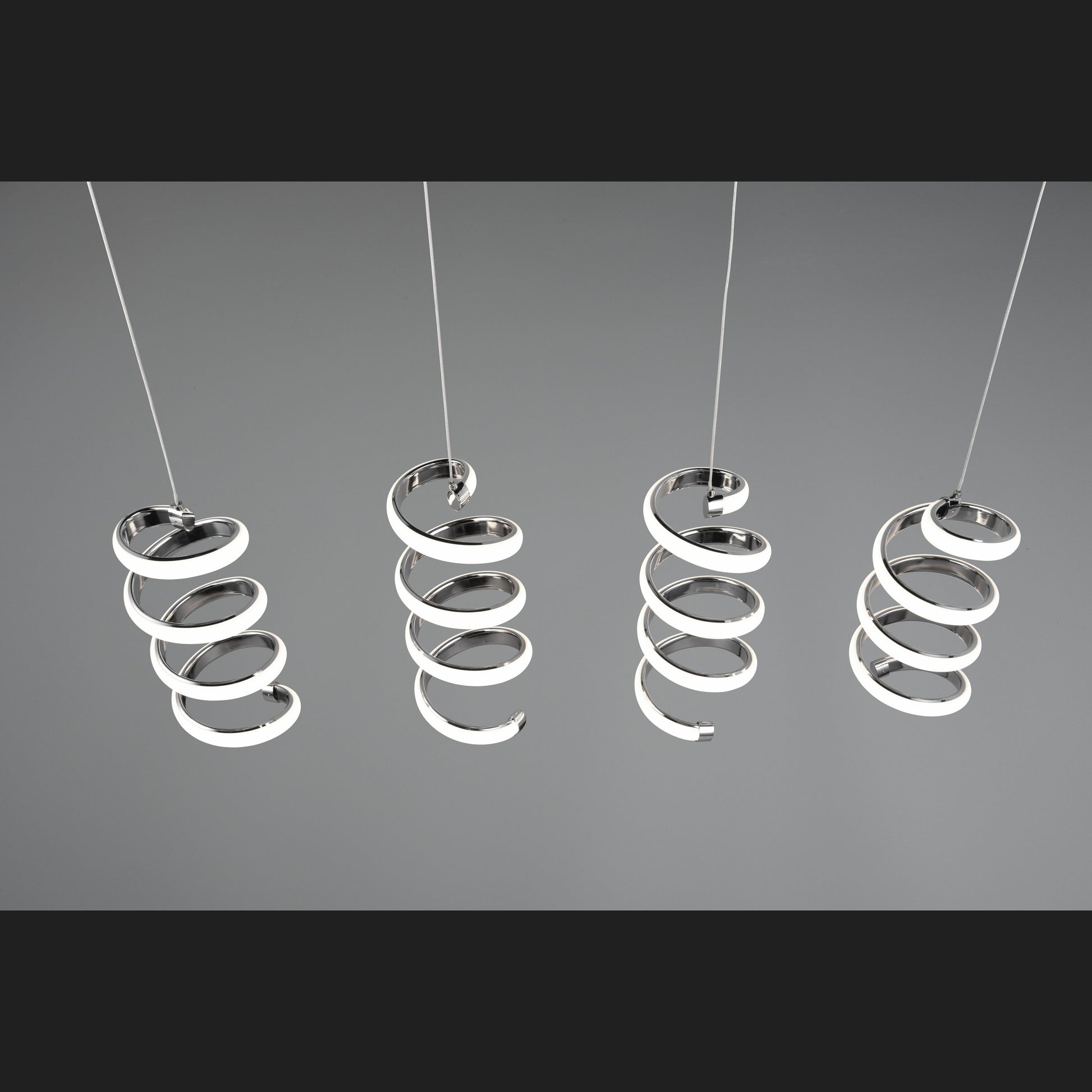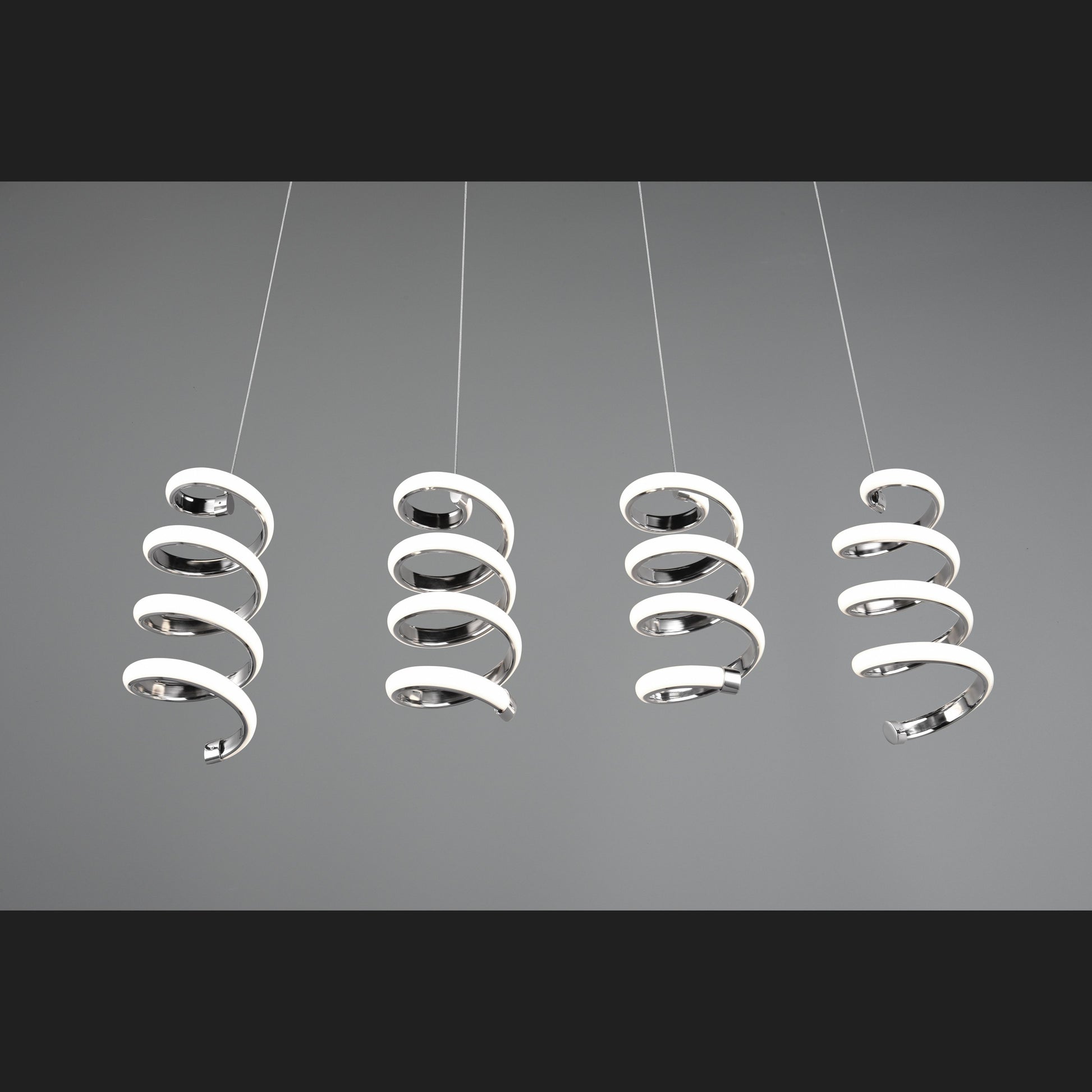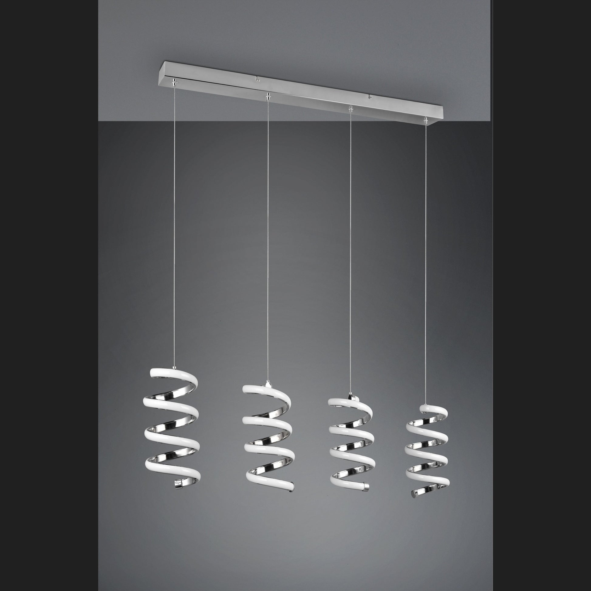 The four-light LAOLA pendant light impresses with its eye-catching yet elegant design. The light sources, which are arranged in graceful spirals, can be controlled in three different brightness levels (100%, 50% and 25%) using an integrated SWITCH dimmer via a standard light switch. Give your dining area a very special, decorative touch with the LAOLA. The elegant combination of chrome-plated metal and white plastic creates special lighting accents and integrates seamlessly into existing interiors. The luminaire also features modern LED technology, which is characterised by high light quality and energy efficiency. Compared to conventional halogen light sources, up to 80% of energy costs can be saved. LED light sources also have a long service life, produce less heat and protect the environment.
