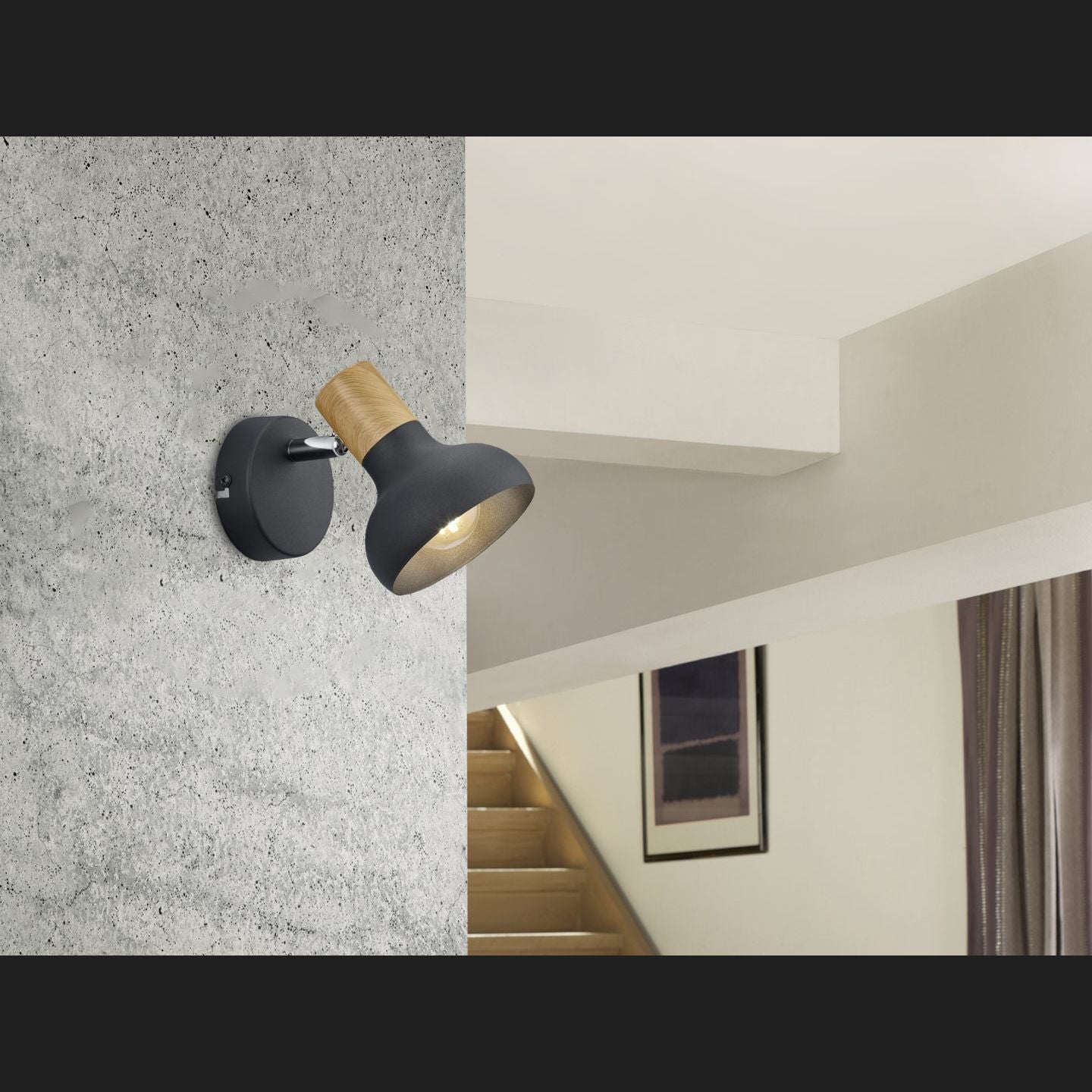 Set pleasant lighting accents with the spotlights from the LATIKA range and immerse your living area in a cosy atmosphere. Whether alone or in combination, as the main light source or as targeted accent lighting for a specific area, the single-flame spotlight can be used in a variety of ways and gives your room a warm feeling thanks to the wood nuances. The combination of black matt metal and wood-look metal brings a cosy character to your home, which can be easily combined with existing interiors. The use of LED light sources is recommended for energy-saving lighting. These are an ideal alternative to conventional halogen light sources and offer high light quality and energy savings of up to 80%. With LED light sources, you also benefit from a long service life and low heat generation while protecting the environment.