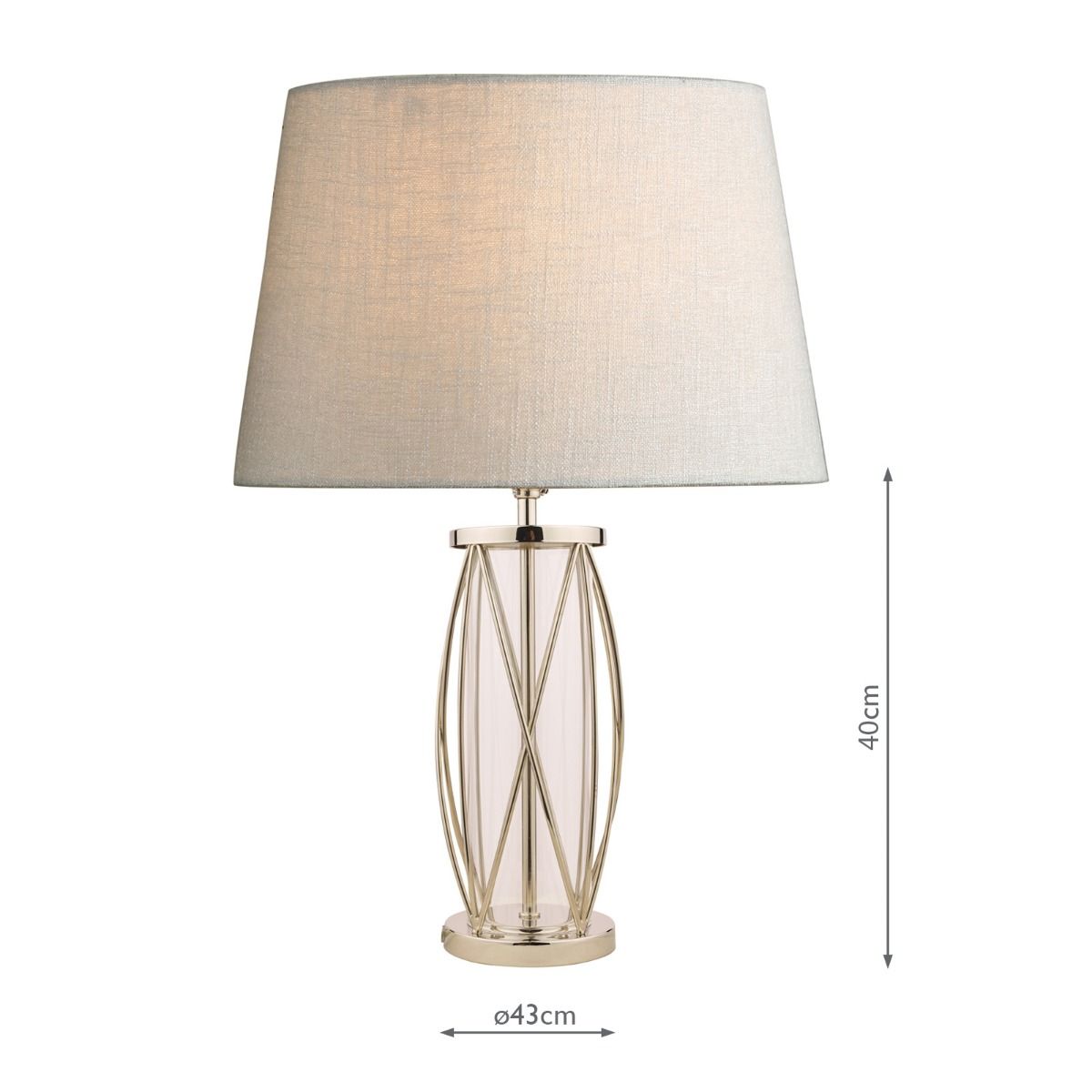 We recommend a 30cm shade – for a timeless look, why not try our Hemsley Pleated shade or, for a contemporary look, try our Bacall Linen shade? This table lamp base has a discreet clear cable with a convenient push bar switch. A larger size is available.