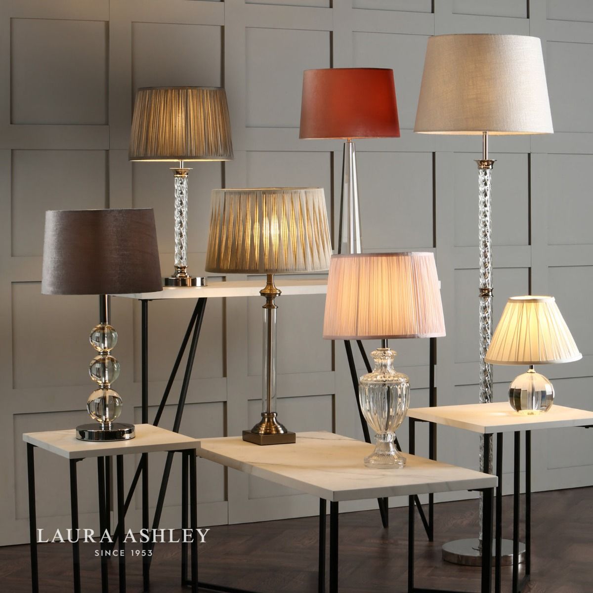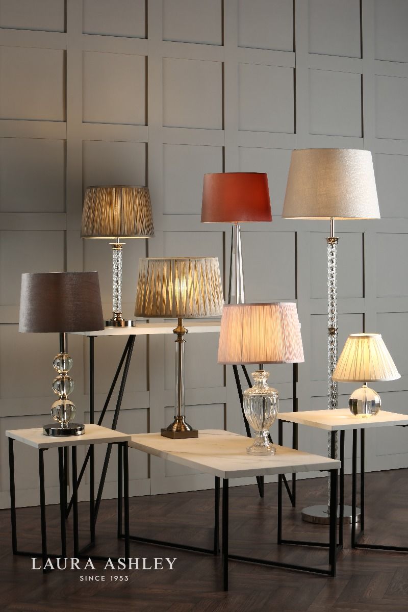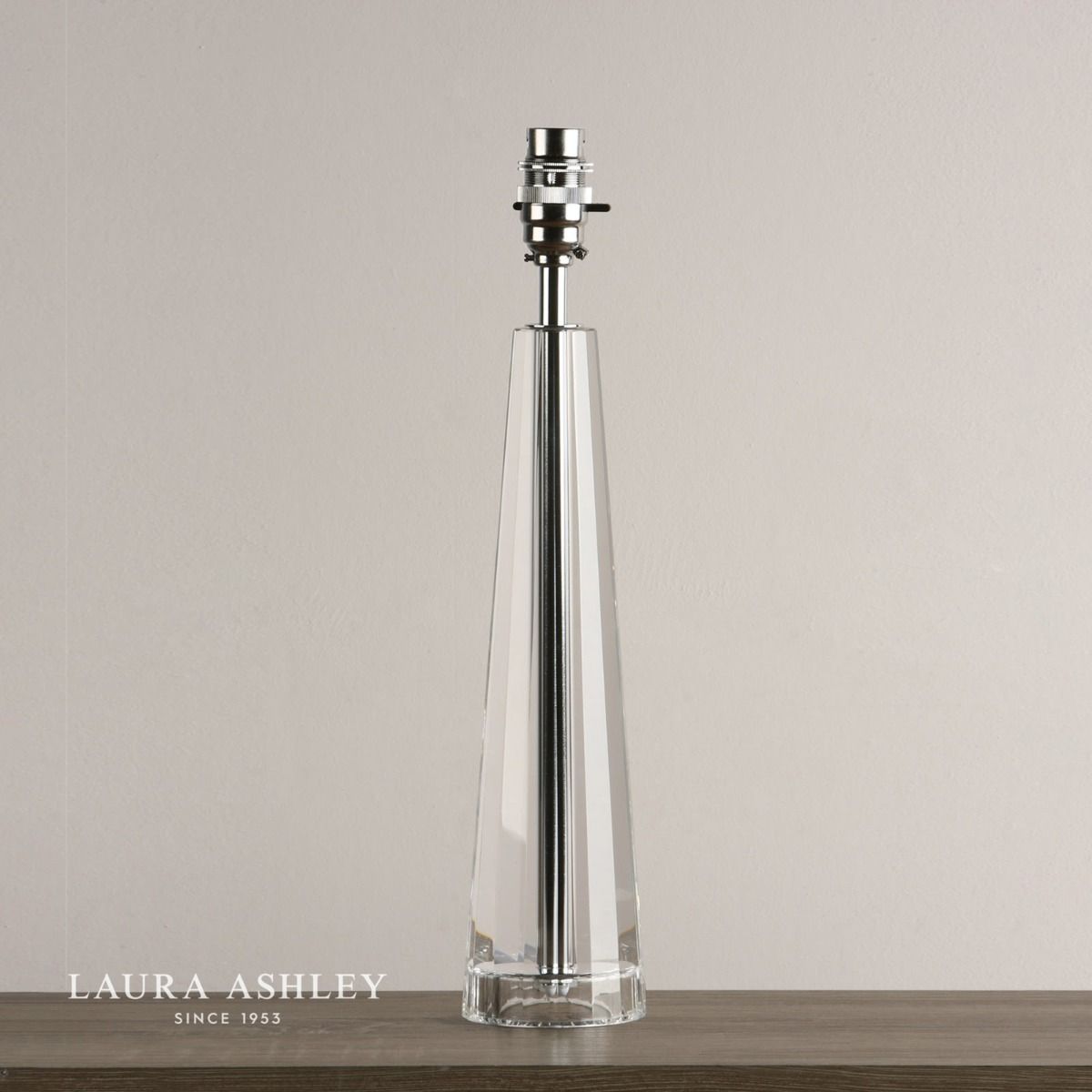 The Laura Ashley Blake table lamp is a beautifully crafted clear cut crystal table light with a thick glass base from which four faceted walls rise to a pinnacle of perfection like an Egyptian obelisk. This heavy lamp base will add contemporary glamour to your home.
