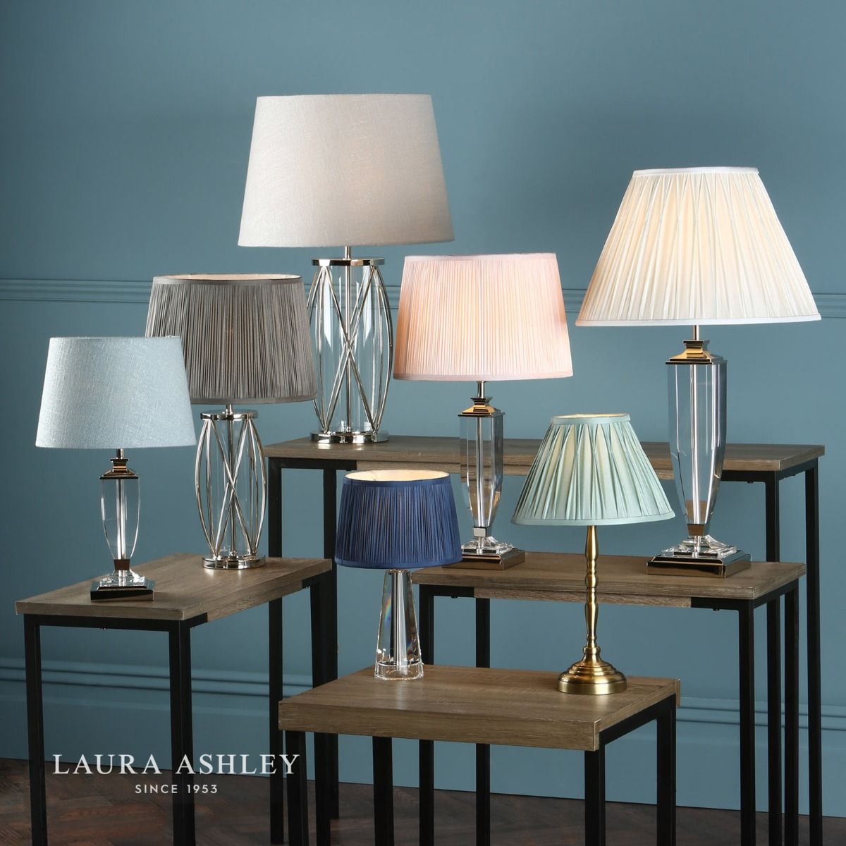 We recommend a 25 cm shade – for a timeless look, not try the Laura Ashley Hemsley Pleated shade or, for a contemporary look, the Bacall Linen shade. This lamp base has a coordinating gold cable with a convenient push-bar switch.