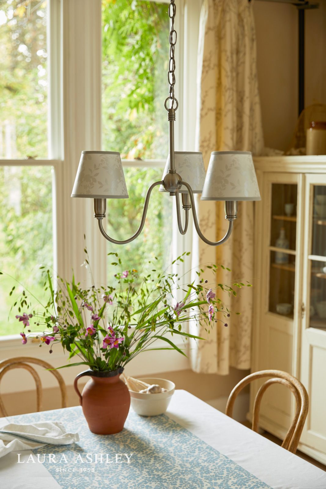Laura Ashley Westbourne 3 Light Armed Pendant Polished Pewter With Shade