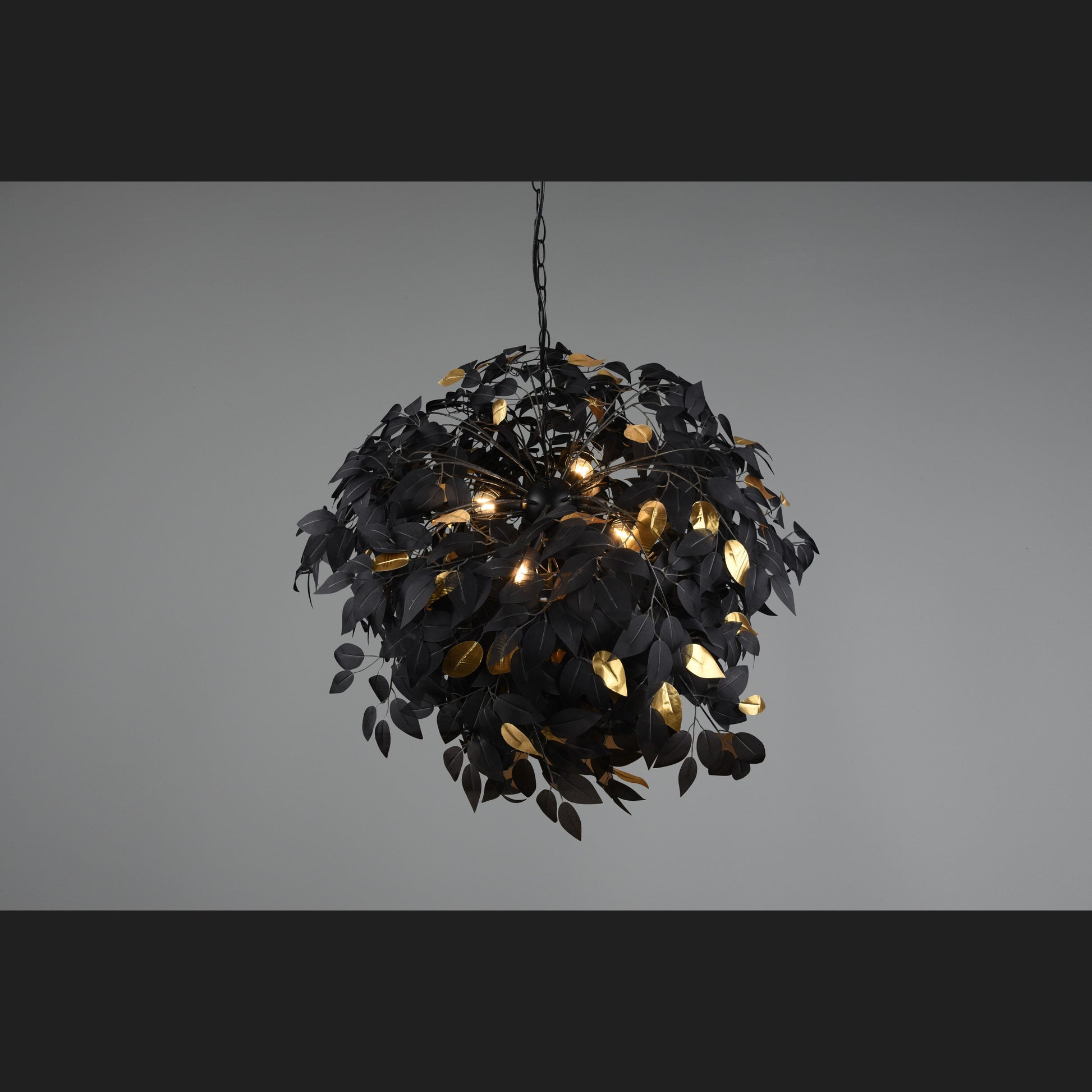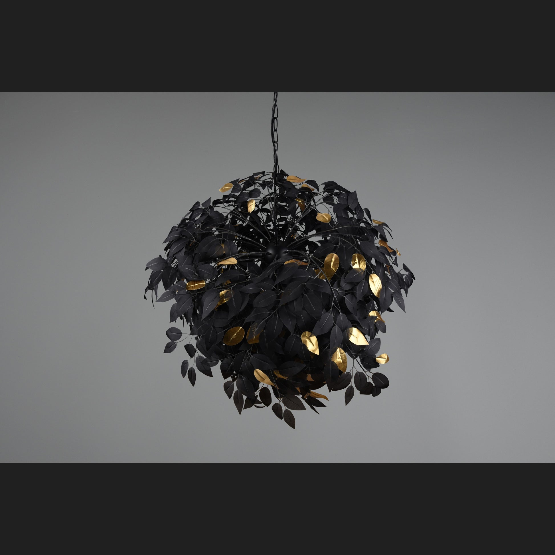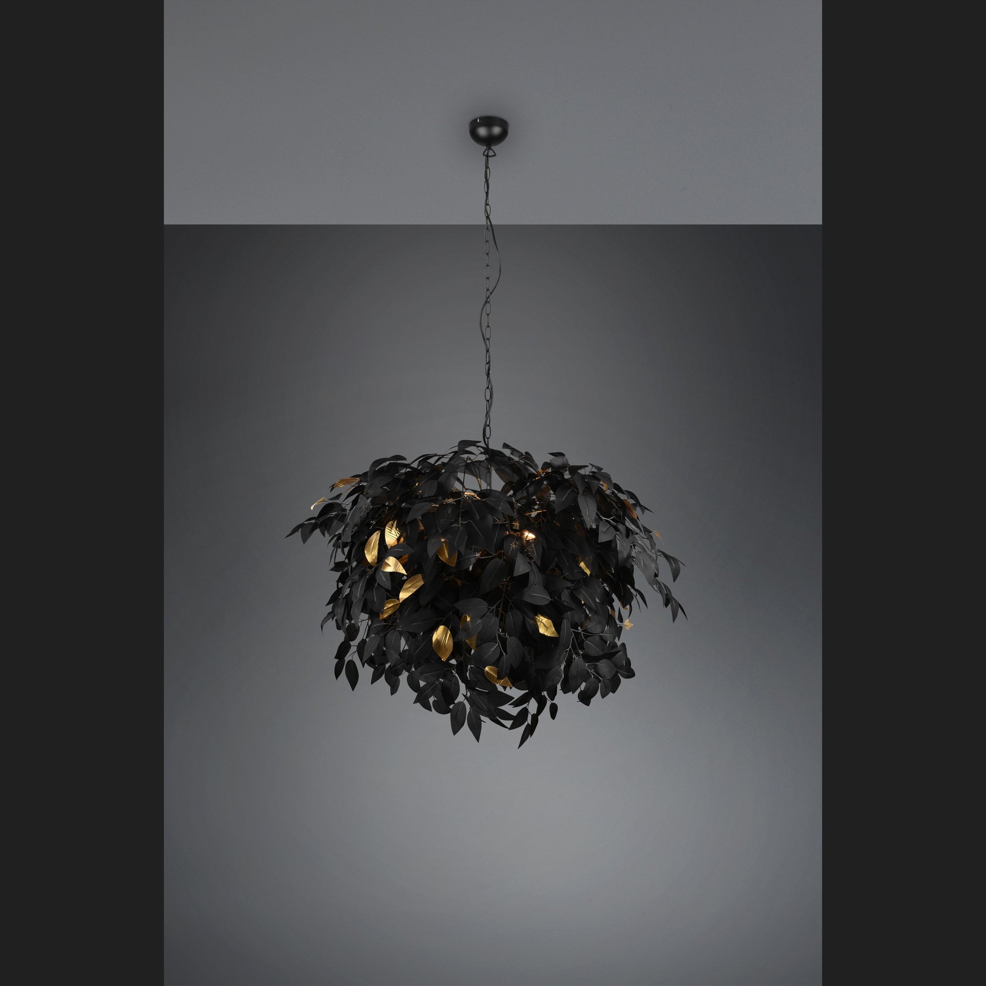 The unusual LEAVY pendant light impresses with its multitude of plastic leaves. This will make the lamp a highlight on your ceiling. An enchanting lighting object for living areas whose style can be assigned to Young Living. The black and gold plastic leaves and the black matt canopy can be combined with other different colour concepts, making it wonderfully easy to integrate into your home. For energy-saving lighting, it is recommended to use an LED illuminant. These are an optimal alternative to conventional halogen lamps and stand for a high quality of light and energy savings of up to 80%. In addition, LED lamps help you benefit from a long service life, low heat generation and at the same time protect the environment.