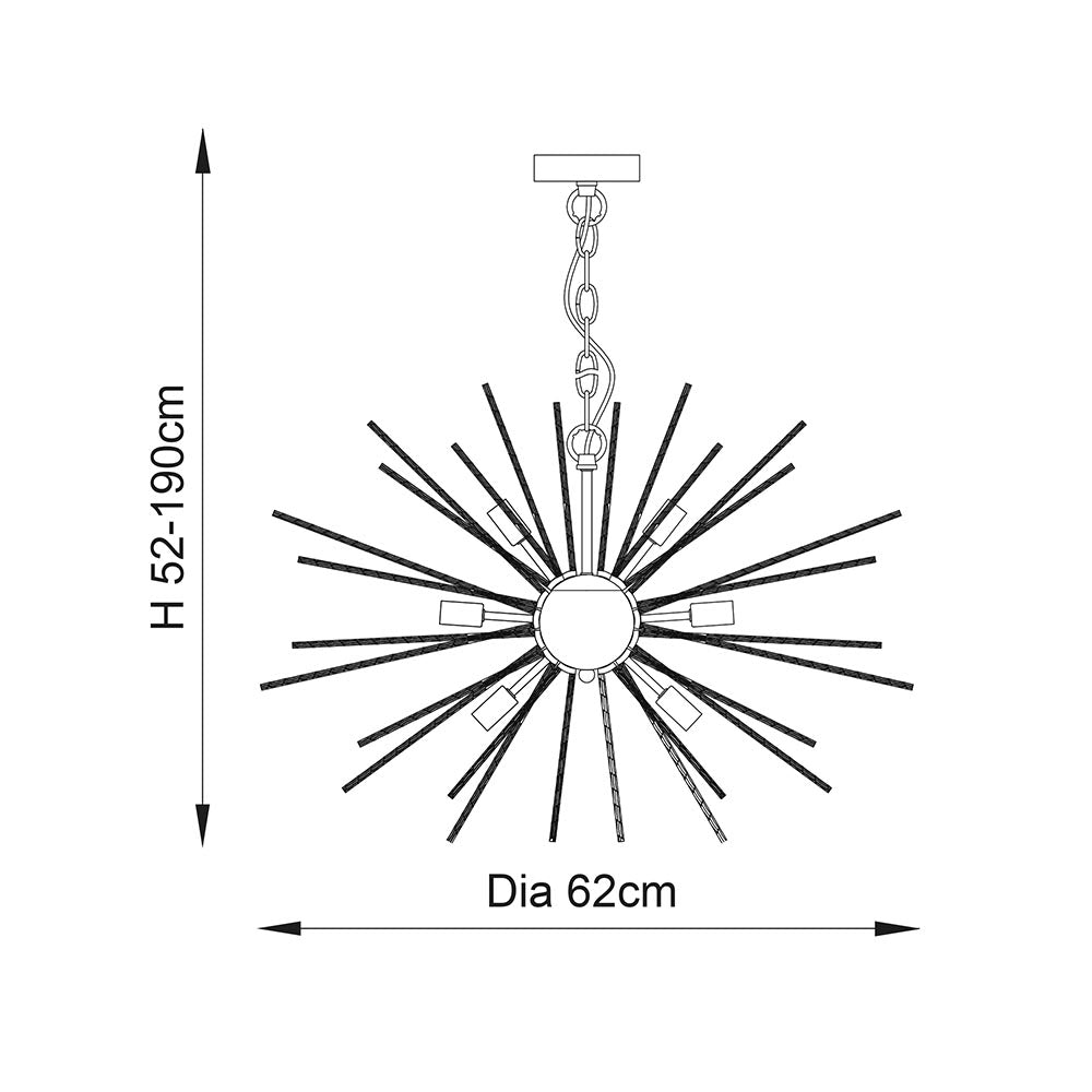 A modern version of a timeless classic from the past, finished in polished chrome featuring an 'explosion' of textured rods that create dramatic light patterns. Suspended from a height adjustable chain with clear flex, be brave and add this to modern or classic interiors to achieve that 'WOW' look...