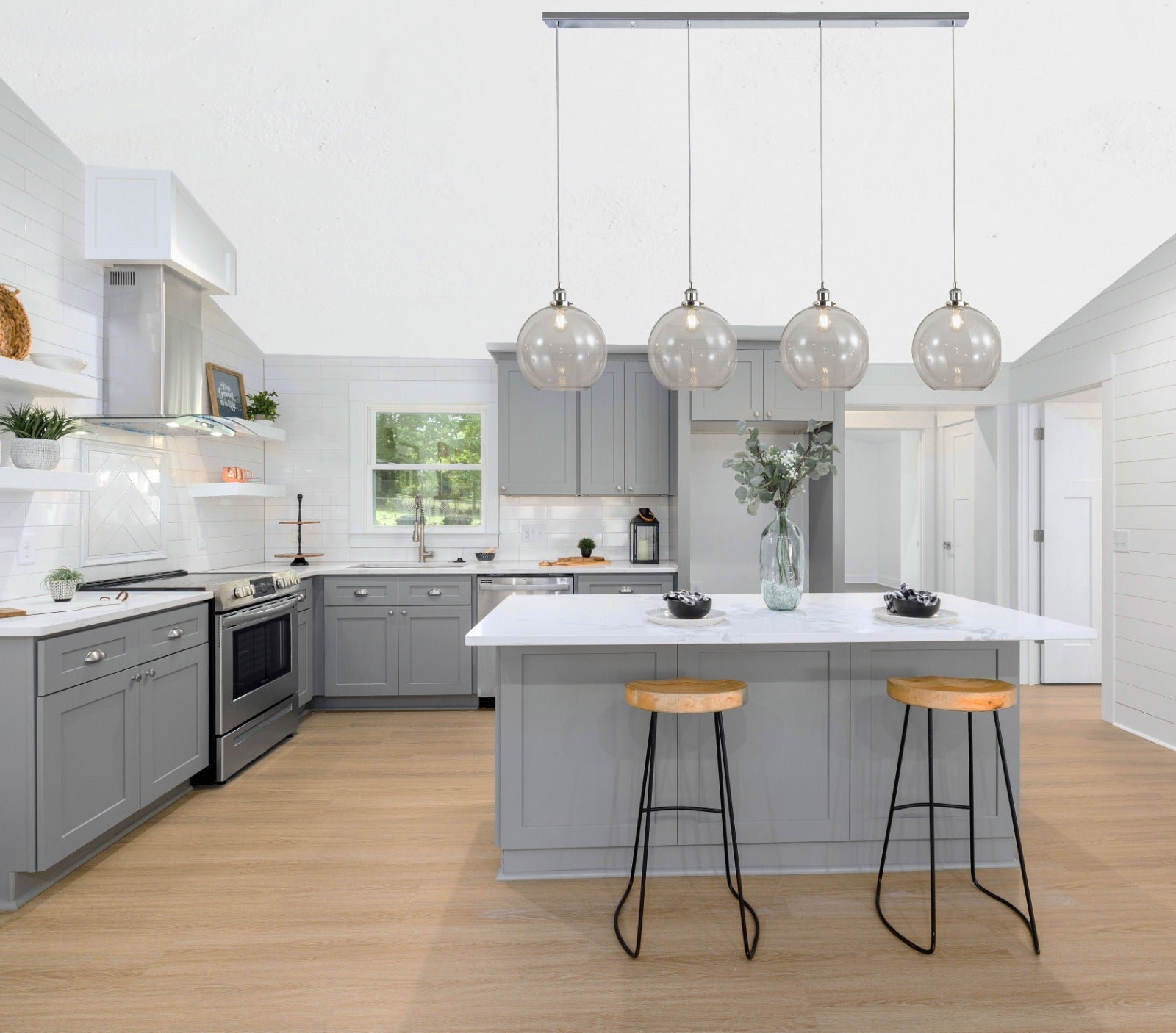 Lewis 4 Light Bar Medium Glass Ball Pendant Polished Chrome
