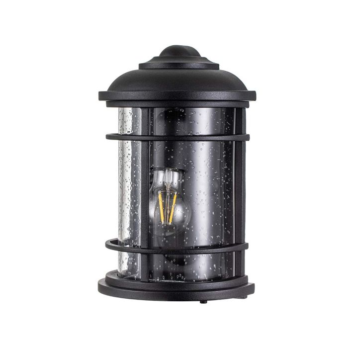The Lighthouse outdoor lighting collection is versatile with a nautical feel. Constructed of Aluminium and steel, it is finished in a Textured Black and has clear seeded glass.