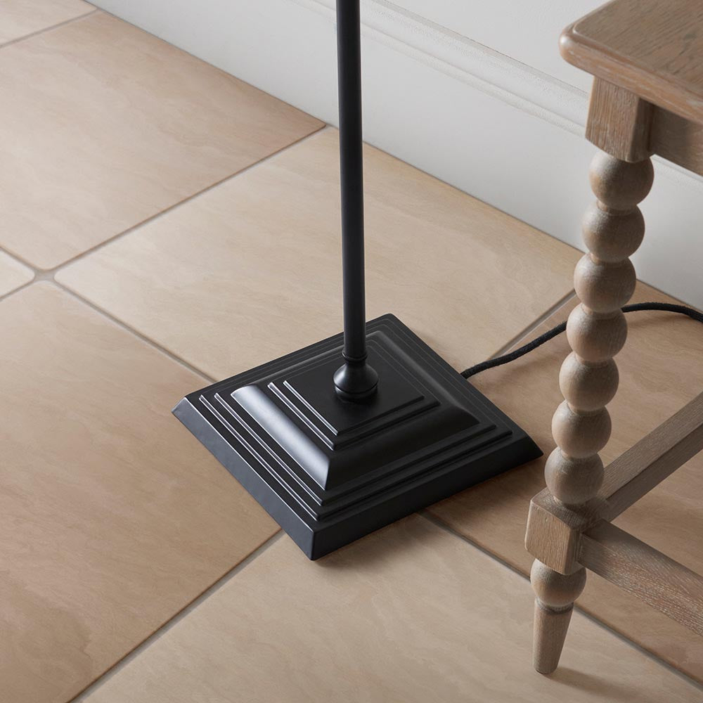 This elegant floor lamp is finished in matt black and features our natural 40cm Ikat shade for the perfect timeless style. Complete with easy to reach switched B22 lamp holder for an authentic classic look, making it a floor lamp to be proud of. Matching items available.