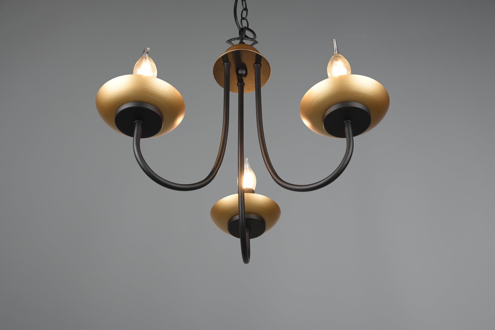 LIVIA crown will bring elegance to your home and with its curved design will fit in as a beautiful decorative element. The chandelier looks great over a living room table and goes especially well with classic furniture. Thanks to the combination of black matte and gold, the lamp can become a fine eye-catcher in your living area. For energy-saving lighting, it is recommended to use an LED illuminant. These are an optimal alternative to conventional halogen lamps and stand for a high quality of light and energy savings of up to 80%. In addition, LED lamps help you benefit from a long service life, low heat generation and at the same time protect the environment.