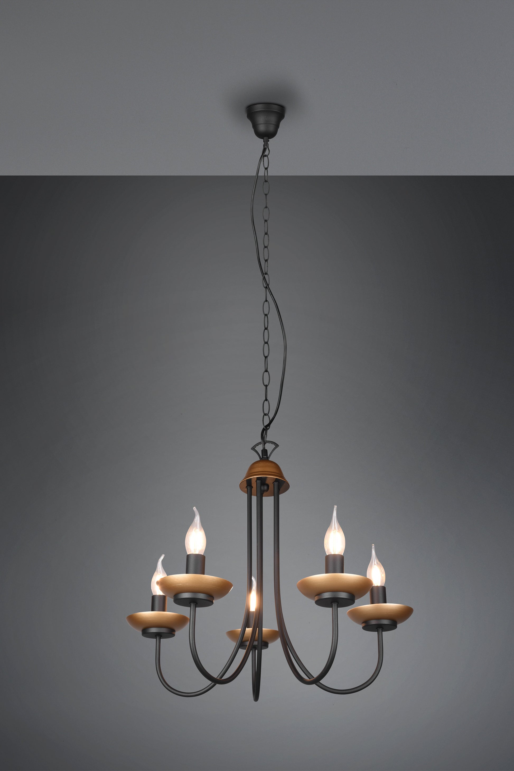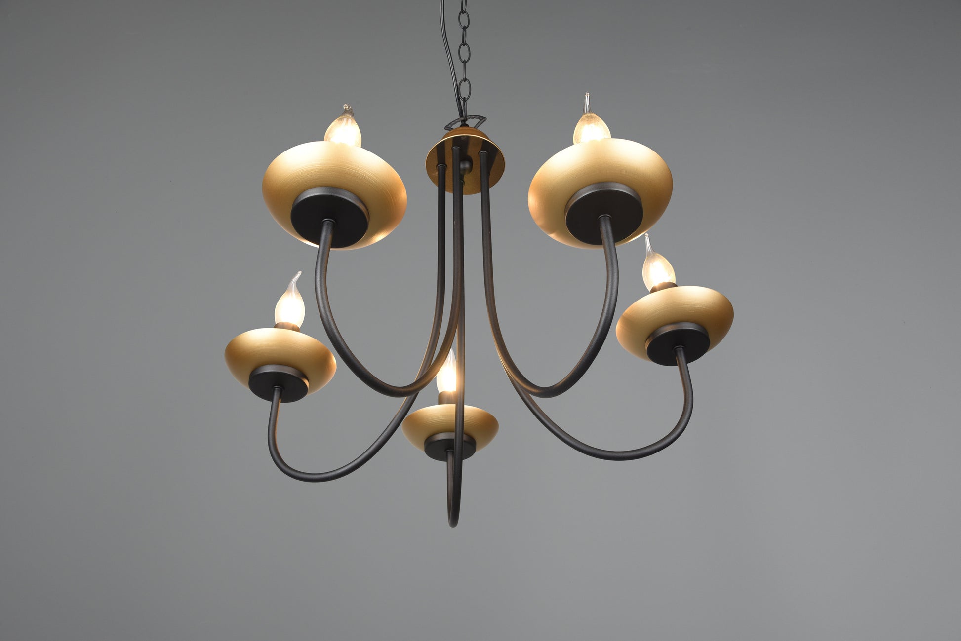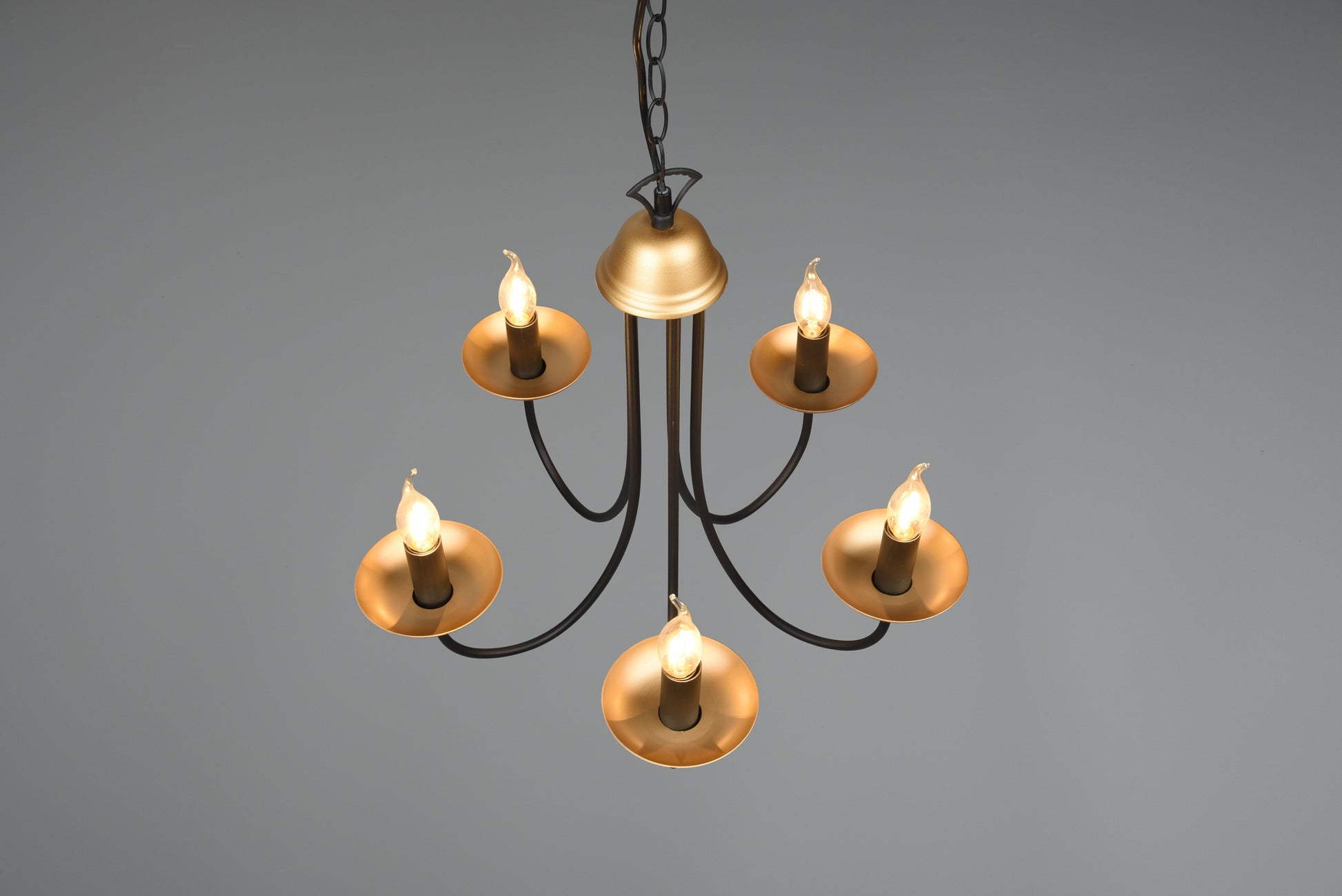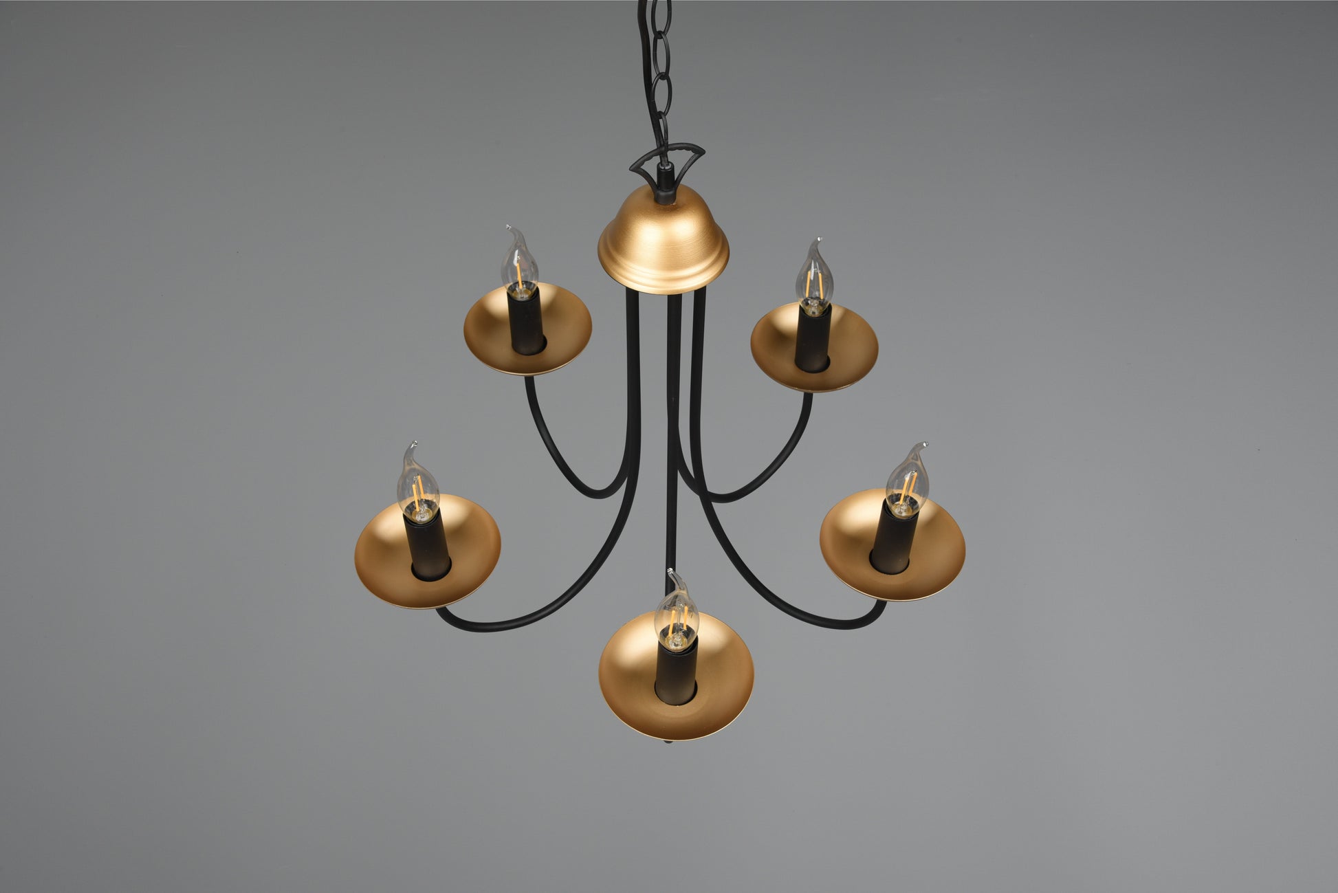 LIVIA crown will bring elegance to your home and with its curved design will fit in as a beautiful decorative element. The chandelier looks great over a living room table and goes especially well with classic furniture. Thanks to the combination of black matte and gold, the lamp can become a fine eye-catcher in your living area. For energy-saving lighting, it is recommended to use an LED illuminant. These are an optimal alternative to conventional halogen lamps and stand for a high quality of light and energy savings of up to 80%. In addition, LED lamps help you benefit from a long service life, low heat generation and at the same time protect the environment.