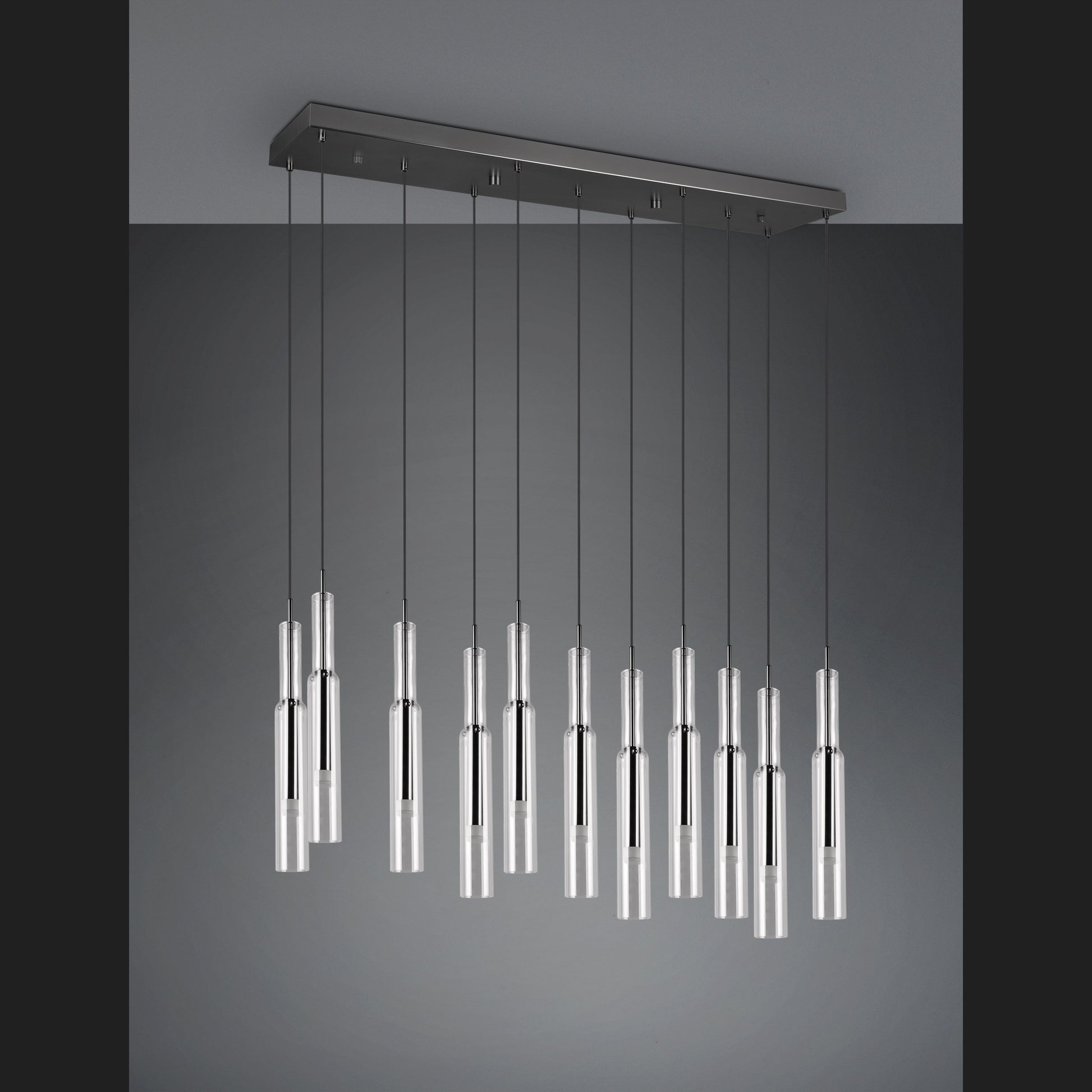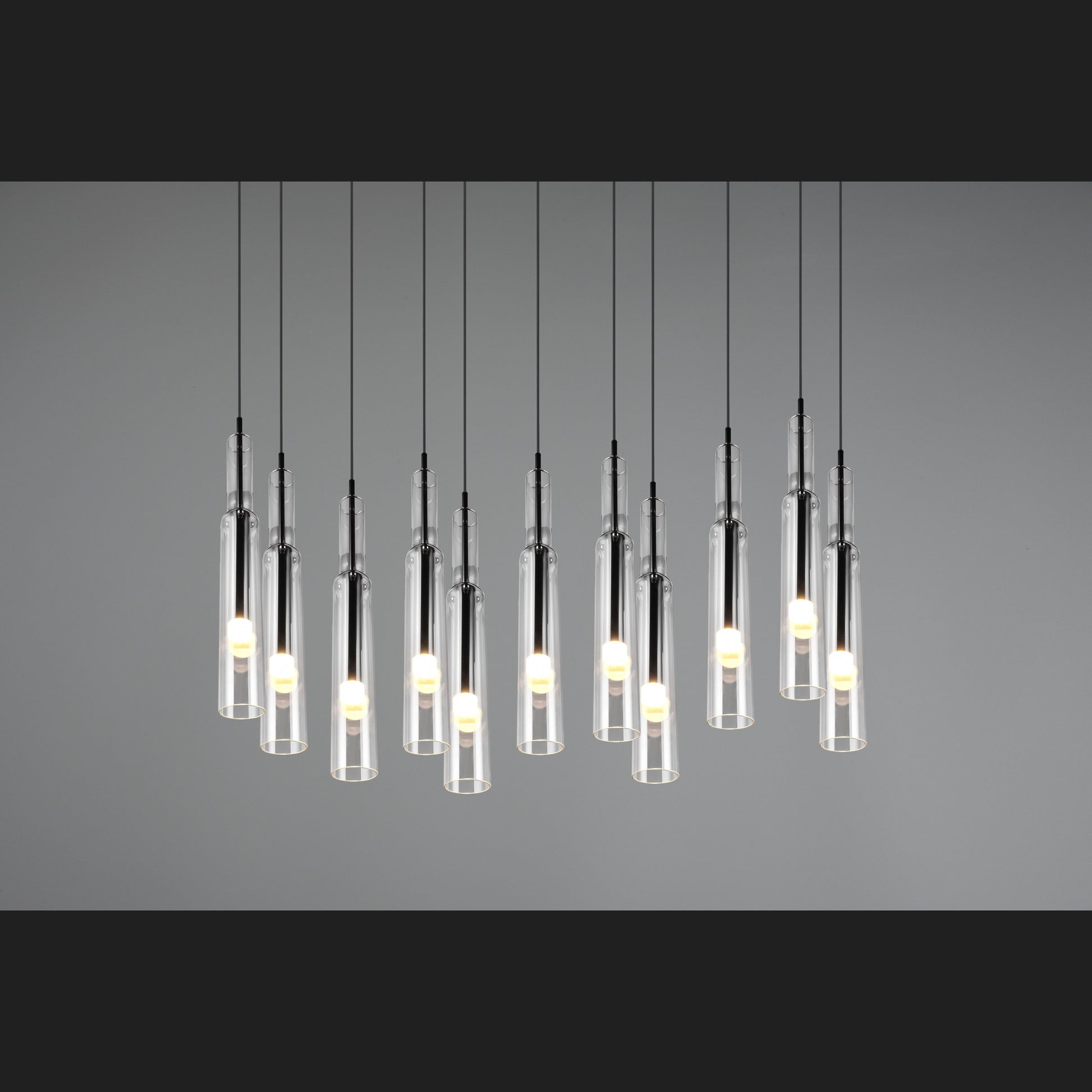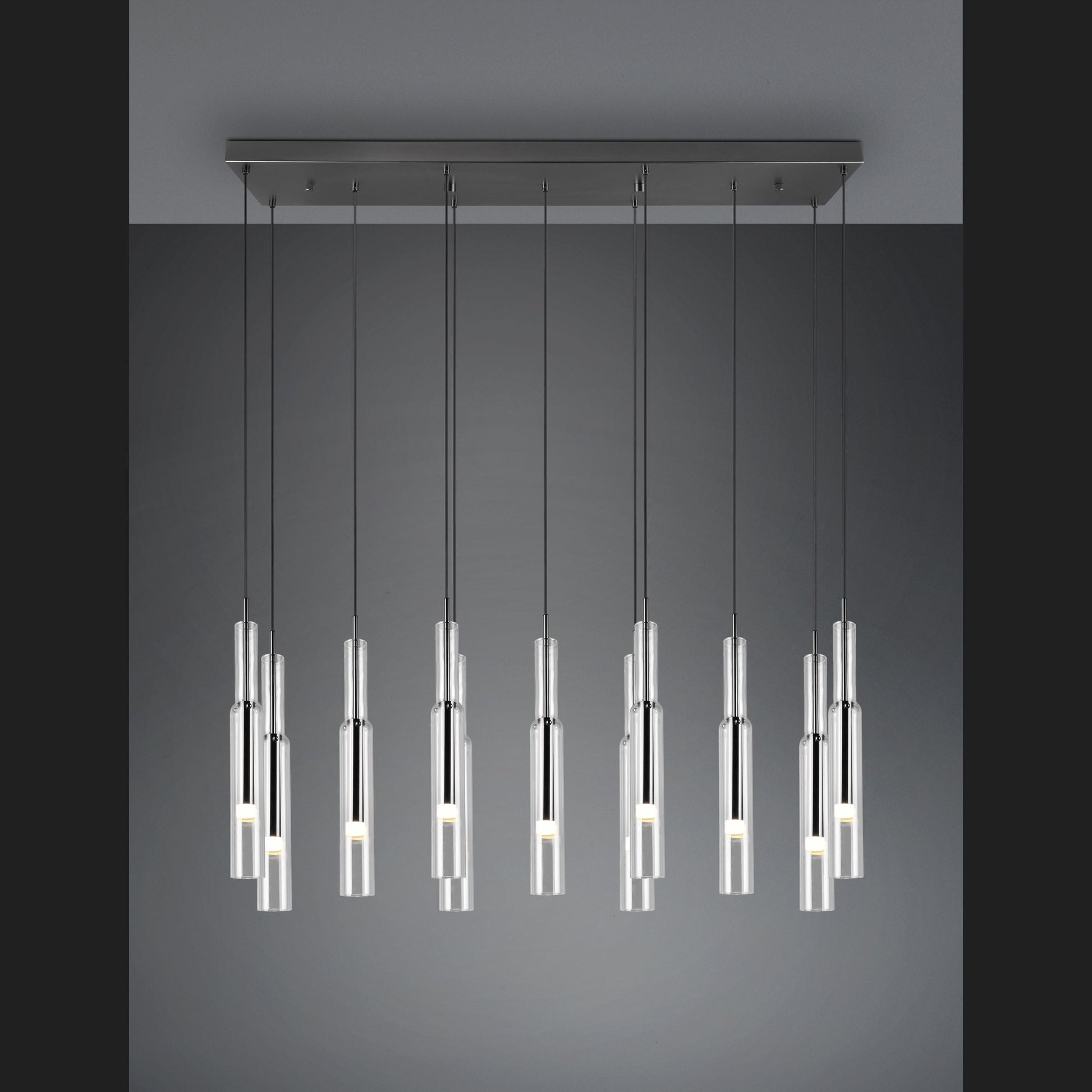 With its elegant design, the LUCENT pendant light adds numerous impressive moments to your dining area. As targeted lighting above a dining table, the luminaire is particularly effective and ensures optimum lighting conditions with its cylindrical glass shades. An integrated SWITCH dimmer allows the brightness to be adjusted from 100% to 50% and 25% using a conventional light switch. You can also use the DIP SWITCH directly on the luminaire to choose from three different light colours to create the atmosphere you want. The combination of metal in black chrome and transparent glass shades can be wonderfully integrated into modern living spaces. The luminaire also features modern LED technology, which is characterised by high light quality and energy efficiency. Compared to conventional halogen light sources, up to 80% of energy costs can be saved. LED light sources also have a long service life, produce less heat and protect the environment.