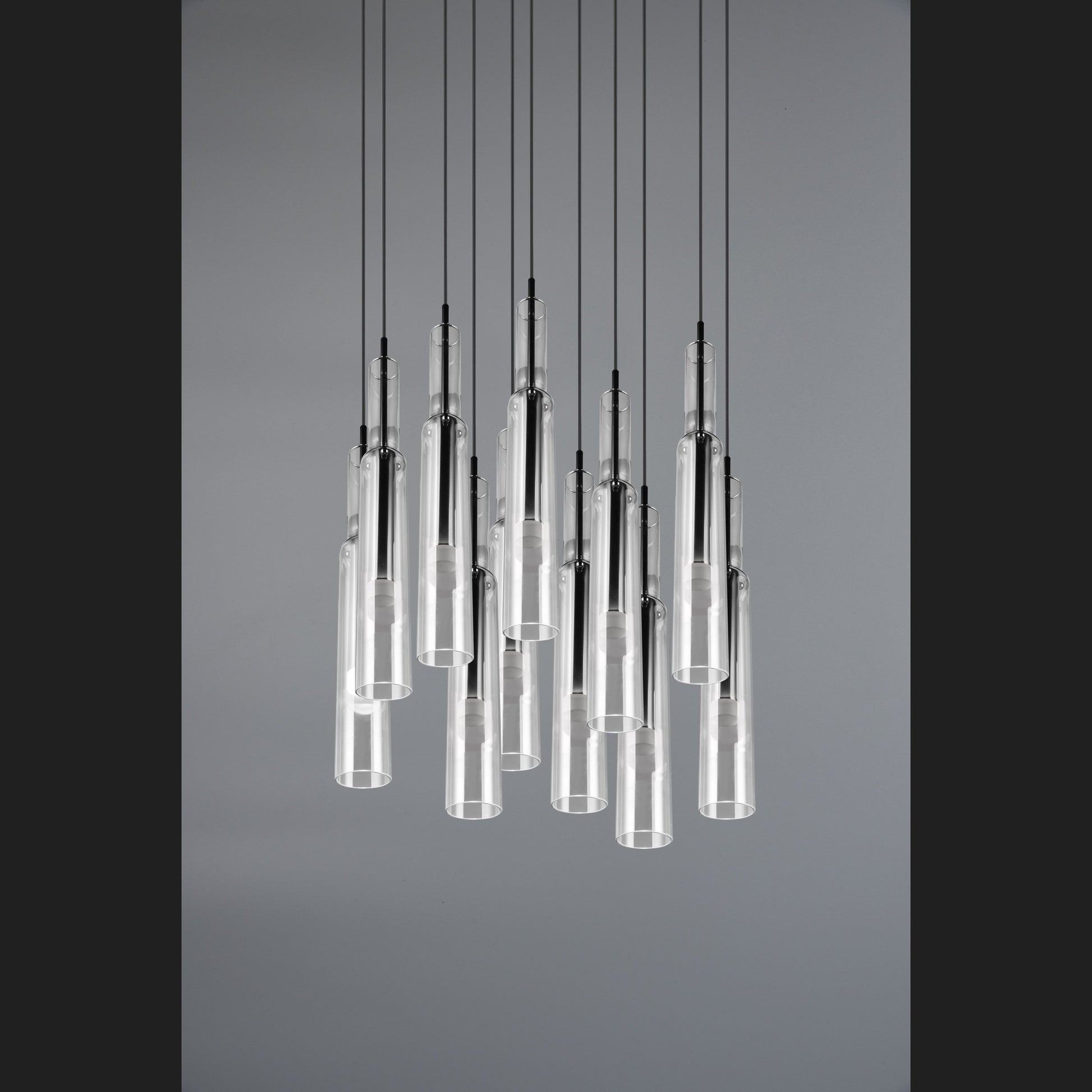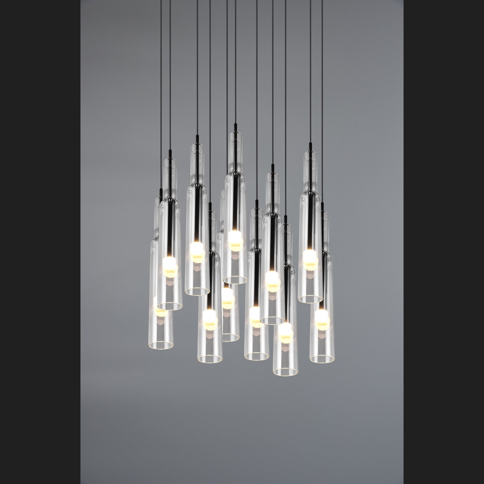 With its elegant design, the LUCENT pendant light adds numerous impressive moments to your dining area. As targeted lighting above a dining table, the luminaire is particularly effective and ensures optimum lighting conditions with its cylindrical glass shades. An integrated SWITCH dimmer allows the brightness to be adjusted from 100% to 50% and 25% using a conventional light switch. You can also use the DIP SWITCH directly on the luminaire to choose from three different light colours to create the atmosphere you want. The combination of metal in black chrome and transparent glass shades can be wonderfully integrated into modern living spaces. The luminaire also features modern LED technology, which is characterised by high light quality and energy efficiency. Compared to conventional halogen light sources, up to 80% of energy costs can be saved. LED light sources also have a long service life, produce less heat and protect the environment.
