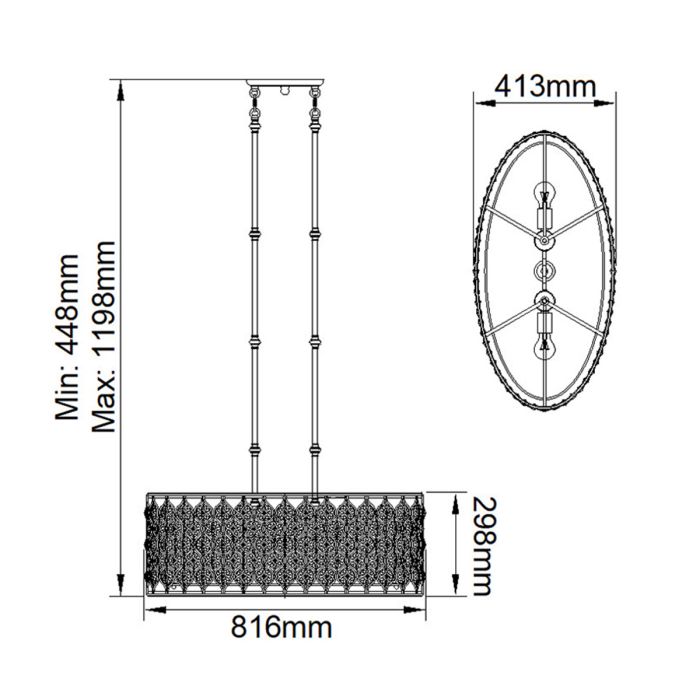 - Product Dimensions: H: 298mm W: 816mm D: 413mm Min/Max Drop: 448mm - 1198mm