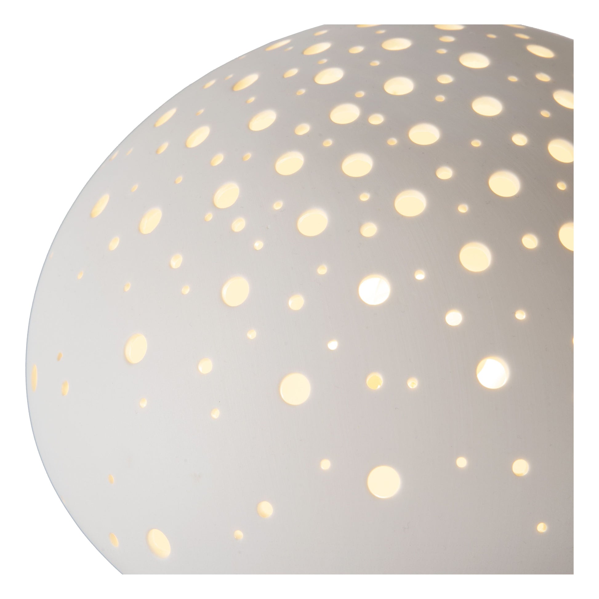 Playful handling of light fits Fungo like a glove. Conjure up some magic in your living room and place this cheerful table lamp among the greenery of plants or in the cozy middle of frames and images. Or create your own forest of light and place it in multiples on the coffee table. At 29 centimeters high, Fungo may not be large in stature, but he stands out in his own mischievous way. The high-quality porcelain fixture has numerous small openings through which the light peeks out. You can switch it on and off with a flick of the switch.