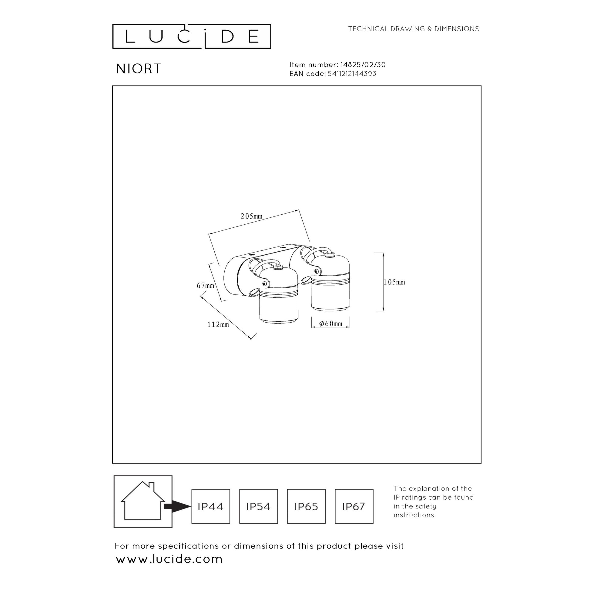 Want the best possible lighting for your patio or carport? No problem. Thanks to its double light sources, which can be tilted and rotated separately, Niort lets you direct its light beams wherever you want. With its sturdy cylindrical aluminium body, Niort is perfect for all weather conditions. This ceiling light is just under 16 centimetres high and just over 20 centimetres long. The outdoor light works with long-lasting LED light bulbs. Connect Niort to an external dimmer, so you can adjust the light to suit the time of day.
