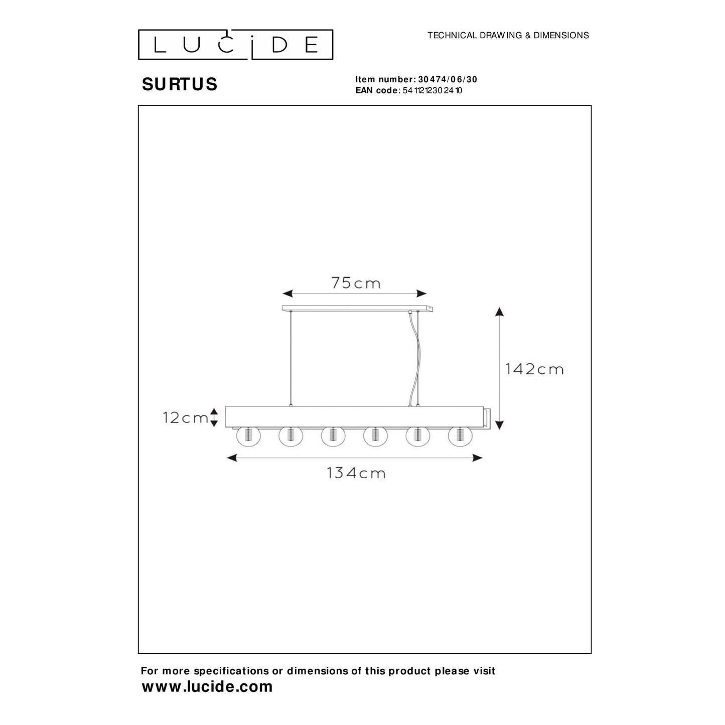 Lucide SURTUS - Pendant light - 6xE27 - Black