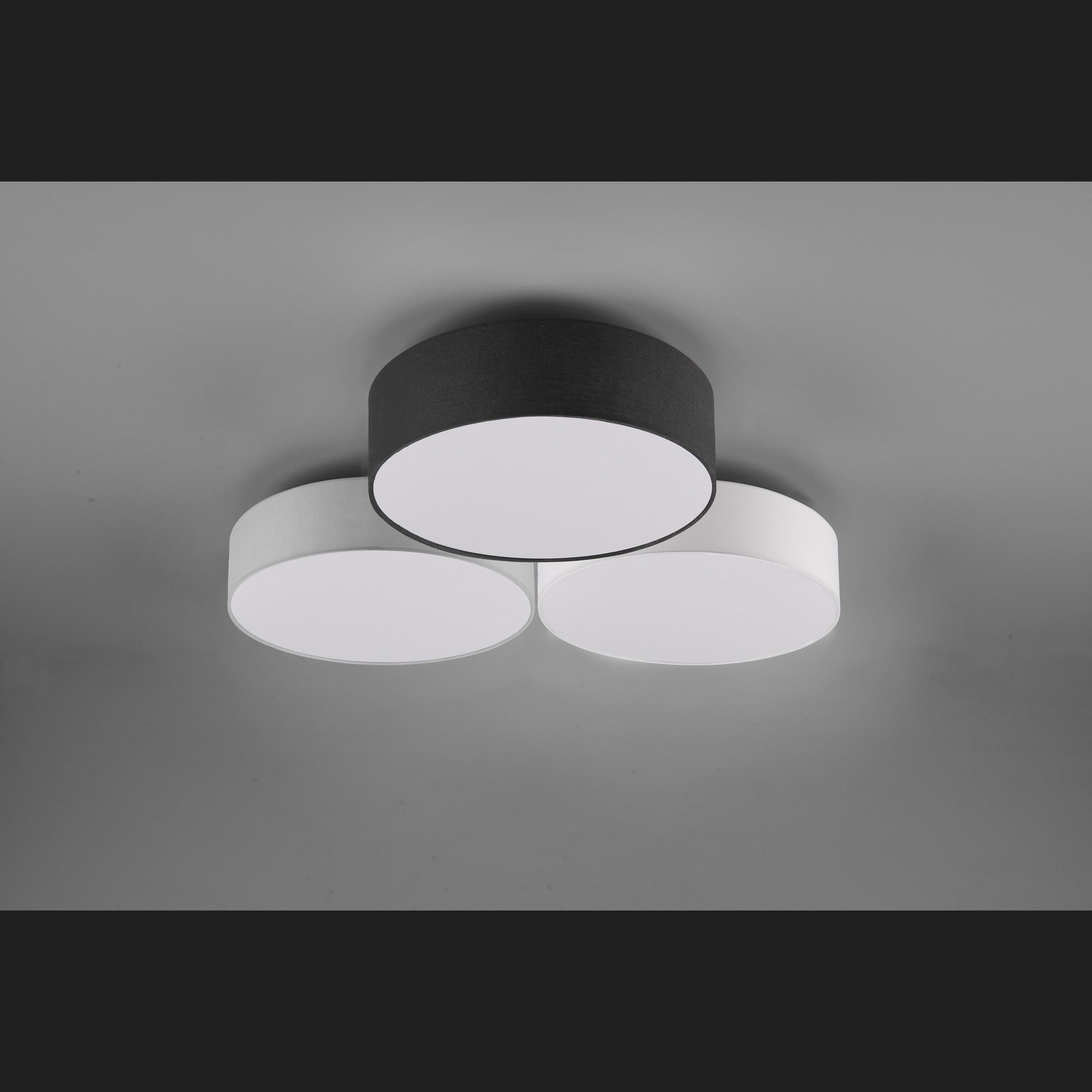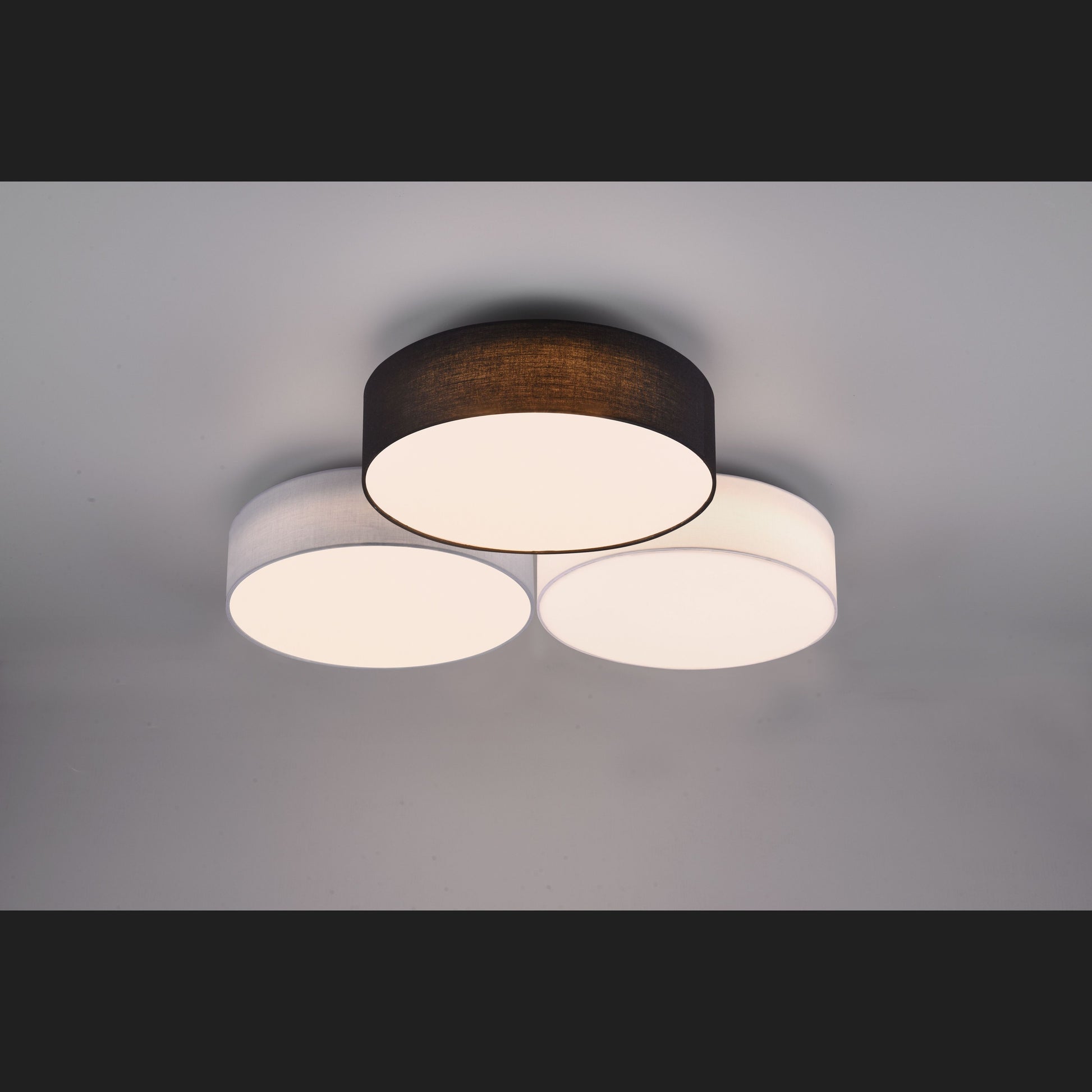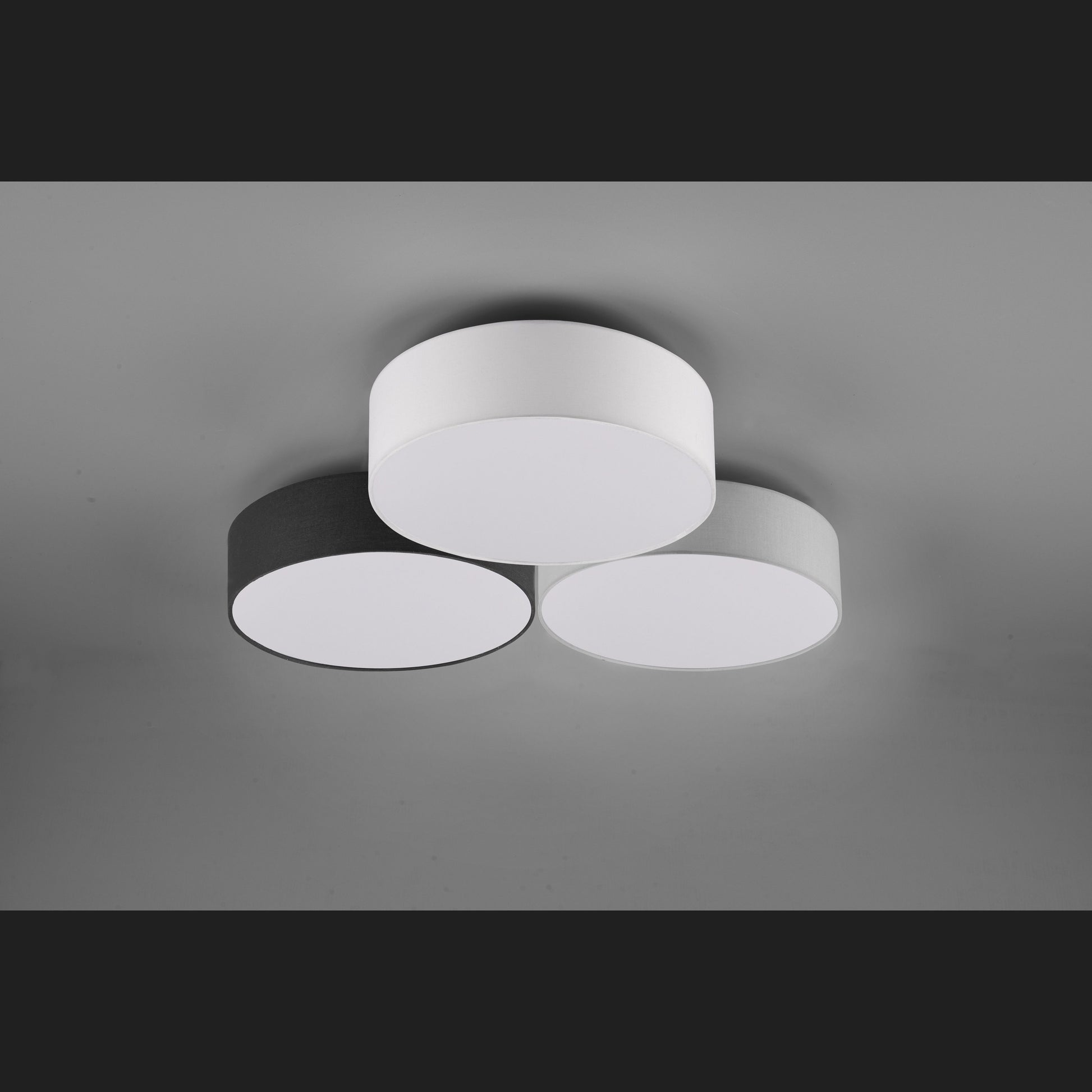 Simpler forms. The LUGANO ceiling lamp inspires with a combination of elegance and cosiness. Thanks to the design with three textile shades, the lamp creates a particularly atmospheric atmosphere. In addition, the luminaire is equipped with a SWITCH dimmer that allows brightness levels of 100, 50 and 25 percent using conventional light switches. A white, a black and a grey fabric shade together create a harmonious combination that can be used in a variety of ways. For energy-saving lighting, it is recommended to use an LED illuminant. These are an optimal alternative to conventional halogen lamps and stand for a high quality of light and energy savings of up to 80%. In addition, LED lamps help you benefit from a long service life, low heat generation and at the same time protect the environment.