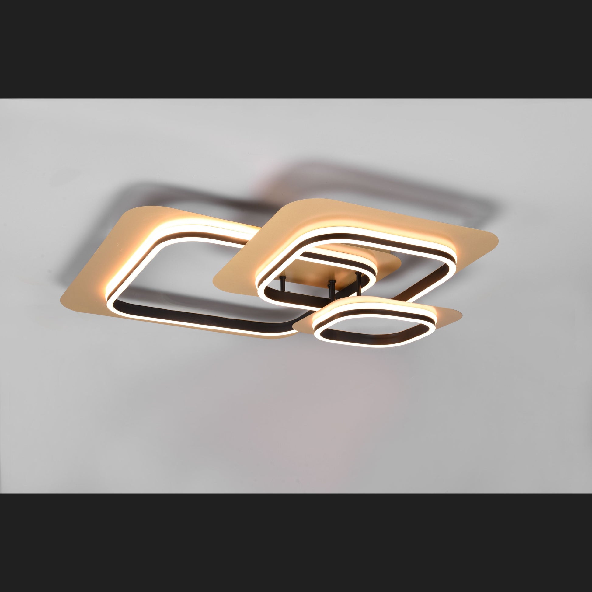The lamps of the LUGO series are true decorative elements that enhance your home in an elegant way. The unusual, square design of the ceiling light becomes an eye-catcher in your living room or entrance area and also creates cosy moments of light. The luminaire has a SWITCH dimmer, allowing the brightness to be graduated from 100% to 50% and 25% via a conventional light switch. The graceful colour design in matt black and gold underlines the noble touch of the design language. In addition, the luminaire features modern LED technology, which is characterised by high light quality and energy efficiency. Compared to conventional halogen lamps, up to 80% of energy costs can be saved. In addition, with LED lamps you benefit from a long service life, low heat generation and protect the environment at the same time.