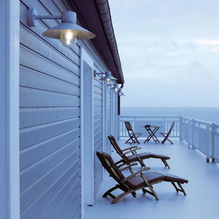 Lund wall lantern by Norlys is constructed from Galvanised steel. It has a clear glass shade and is IP65 rated. Guaranteed for 5 years with no coastal exclusion zone.