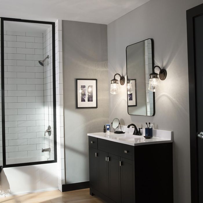 The Lyndon collection combines a simple streamlined design with an emphasis on traditional details. Available in a beautiful Architectural Bronze finish with clear seedy glass, these fixtures can effortlessly blend with your existing décor.