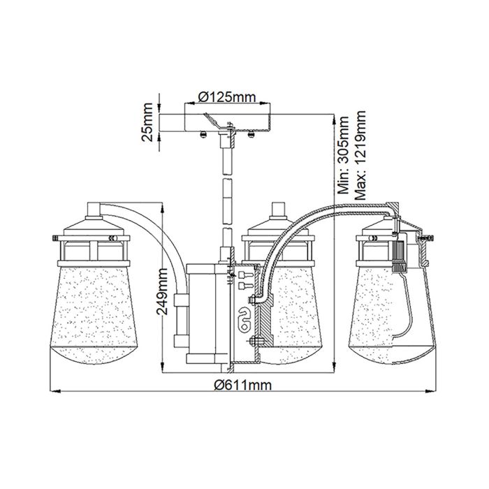 - Product Dimensions: H: 249mm D: 611mm Min/Max Drop: 305mm - 1219mm