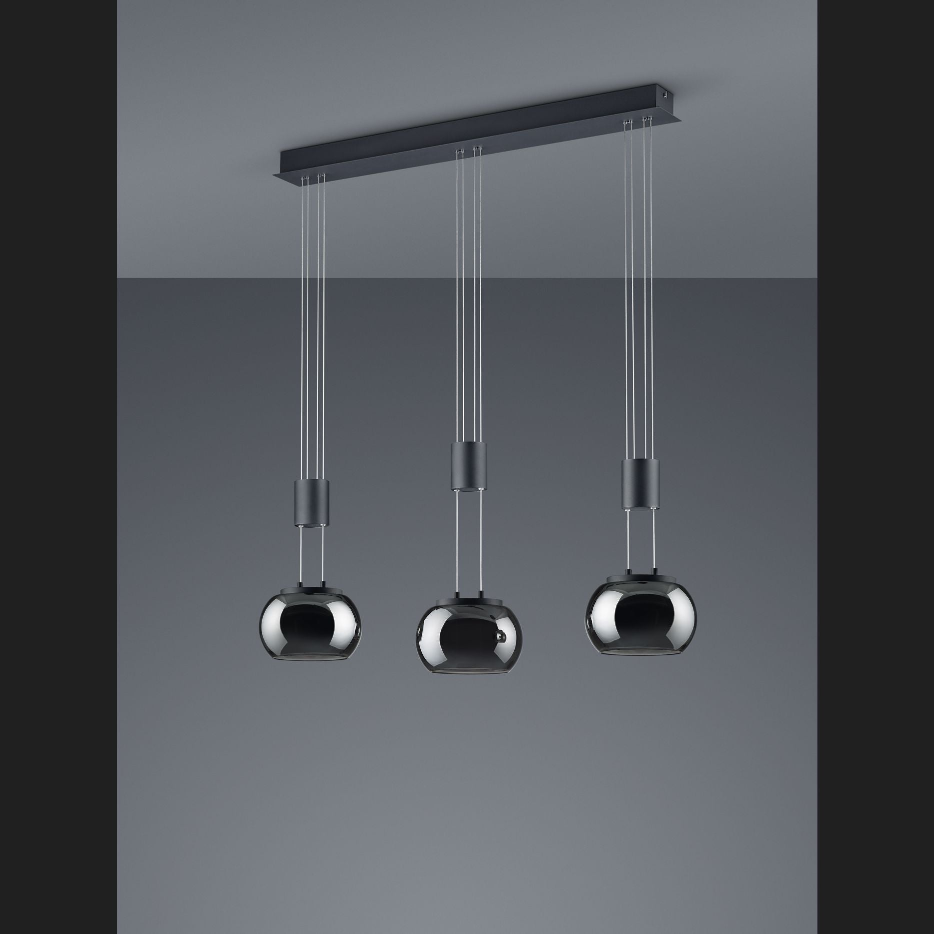 The MADISON pendant luminaire provides simple elegance with its modern design language. The graceful glass shades can be individually adjusted in height and set the desired light accents. Placed centrally above the dining table, the pendant luminaire comes into its own as a central element. The integrated SWITCH dimmer also enables different brightness levels and provides suitable lighting moods. Thanks to the colour design in matt black with glass shades in chrome, the luminaire sets modern accents and can be combined with existing furniture. In addition, the luminaire features modern LED technology, which is characterised by high light quality and energy efficiency. Compared to conventional halogen lamps, up to 80% of energy costs can be saved. In addition, LED light sources have a long service life, produce less heat and protect the environment.