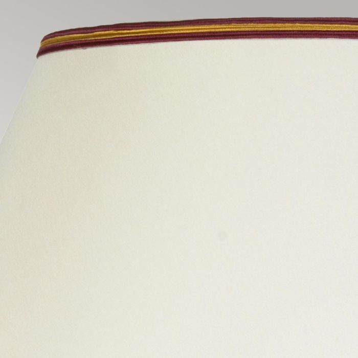 Majin Oxblood Red Jar 1 Light Table Lamp with Polycotton shade - Oxblood with Cream with Burgundy and Gold Soutach Trim Shade