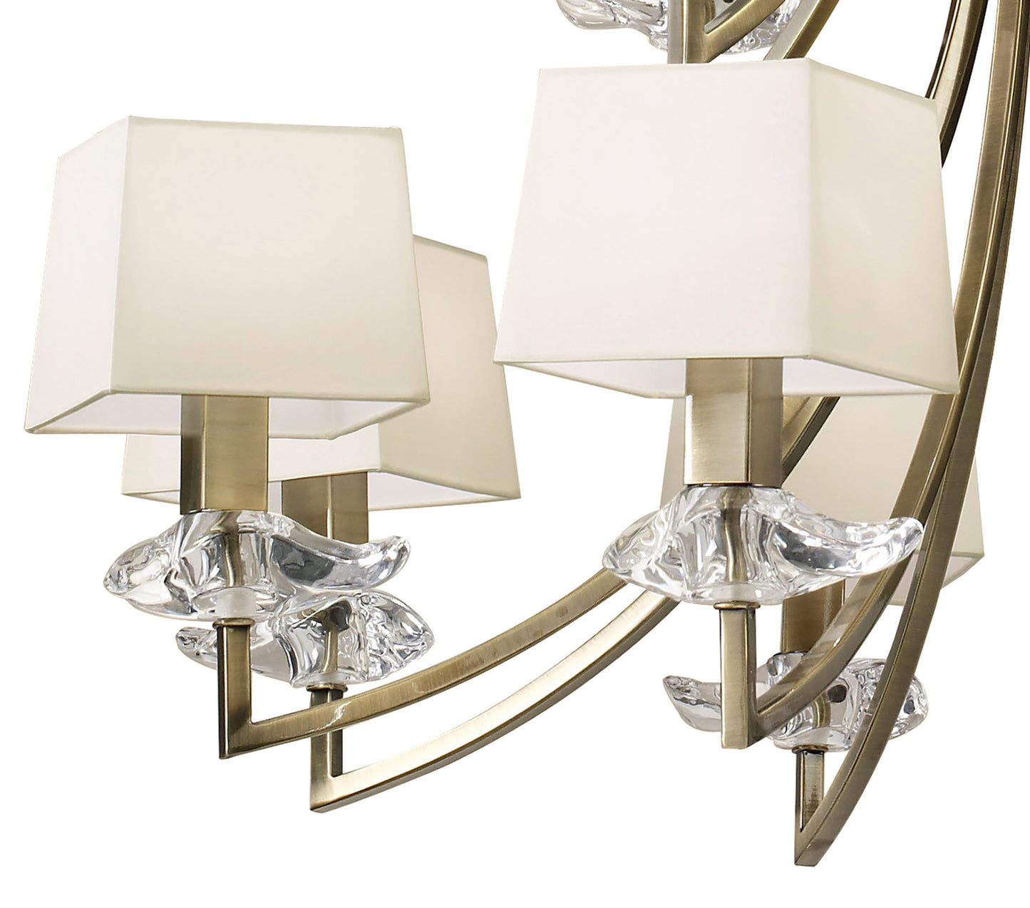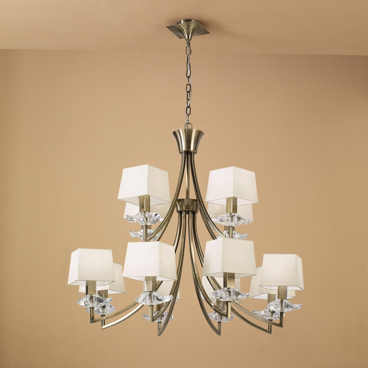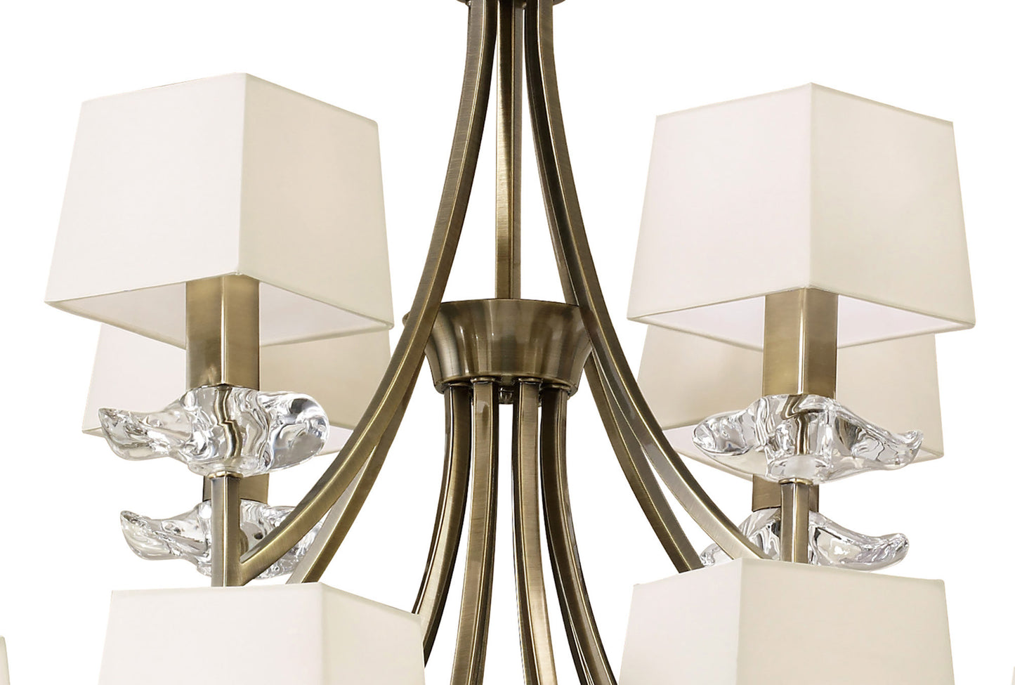 Akira Pendant 2 Tier 12 Light E14, Antique Brass With Cream Shades by Mantra