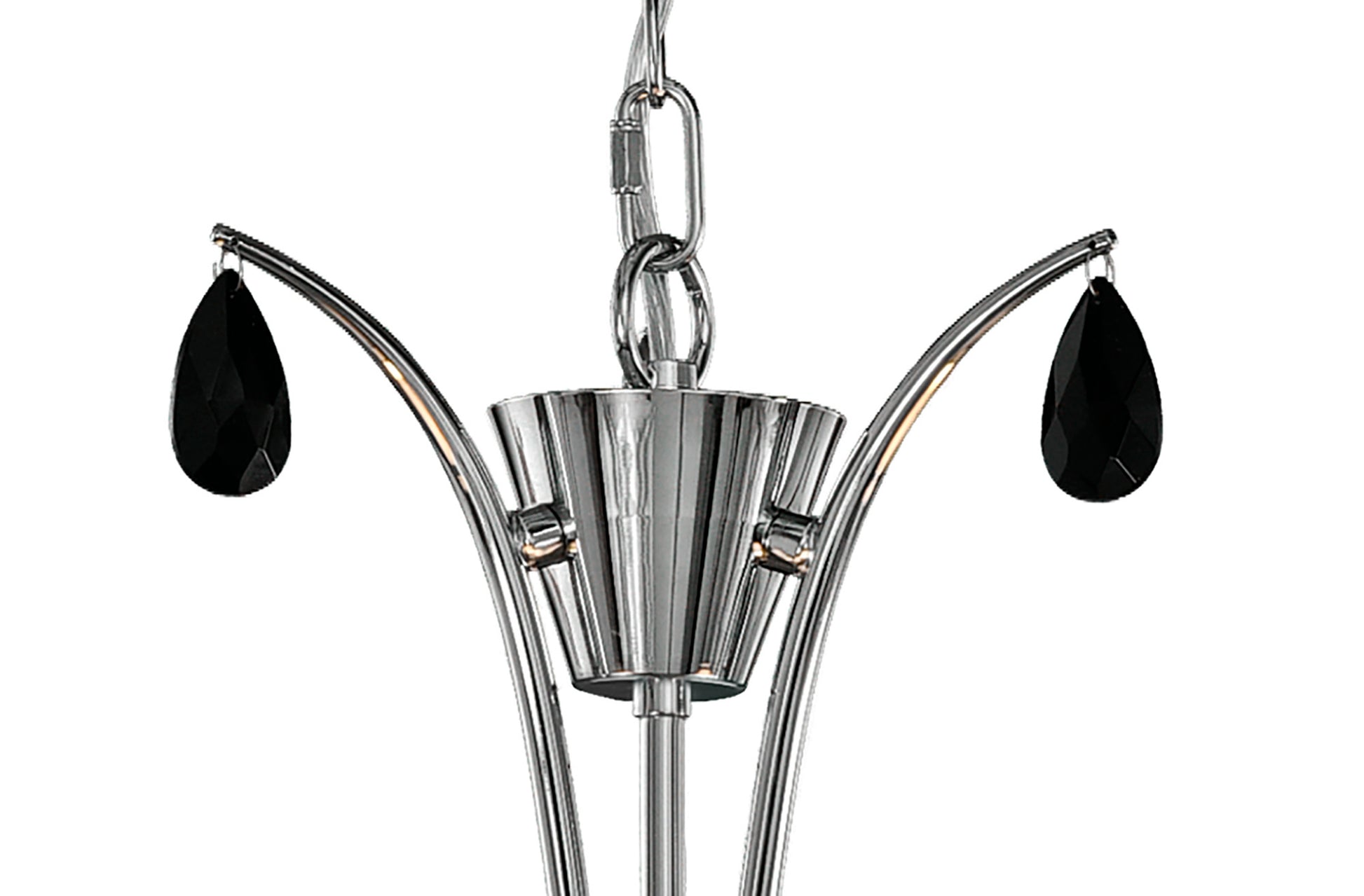 Andrea Pendant 67cm Round, 5 x E14 (Max 20W), Polished Chrome, White Shades, Black Crystal Droplets by Mantra