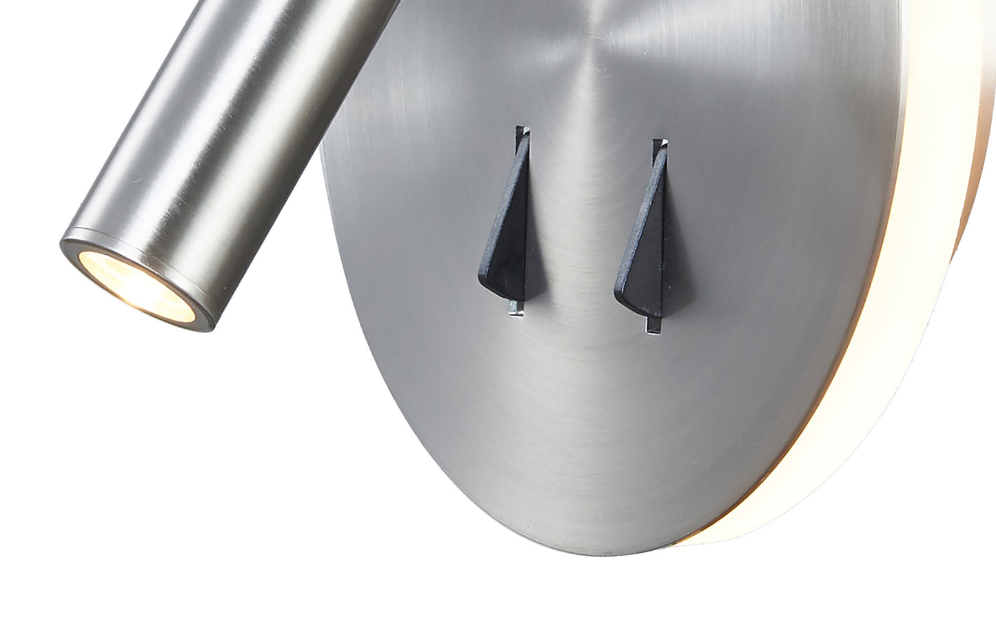 Cayman Round Wall + Reading Light, 6W + 3W LED, 3000K, 620lm Total, Individually Switched, Satin Nickel, 3yrs Warranty by Mantra