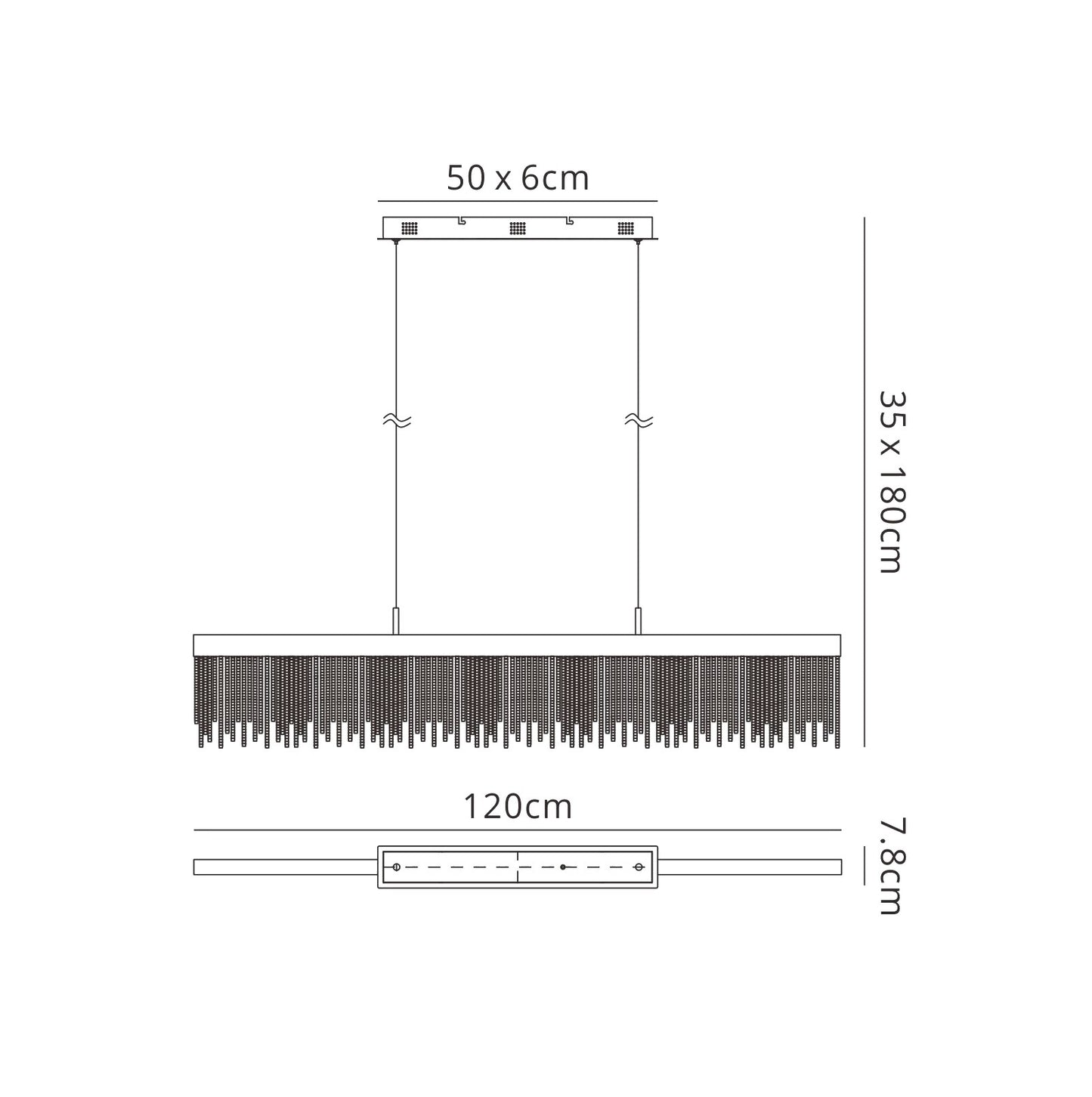 Cinna Linear Pendant 33W LED, 3000K, 3300lm, Polished Chrome / Crystal Chain, 3yrs Warranty by Mantra