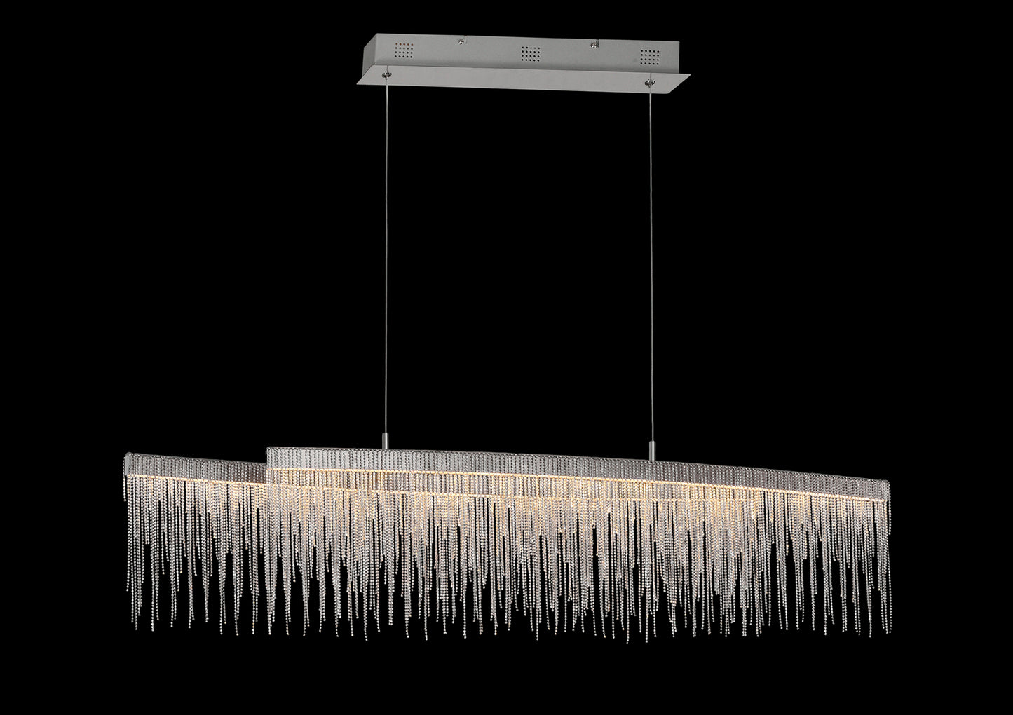 Cinna Linear Pendant 42W LED, 3000K, 4200lm, Polished Chrome / Crystal Chain, 3yrs Warranty by Mantra