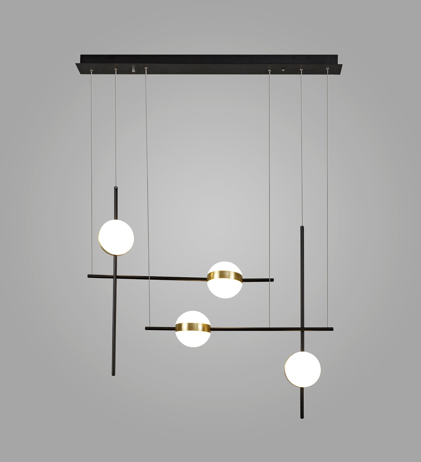 Cuba Criss Cross Linear Pendant 4 Light, 32W LED, 3000K, 2400lm, Gold, Black, 3yrs Warranty by Mantra