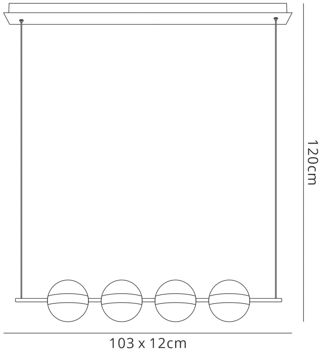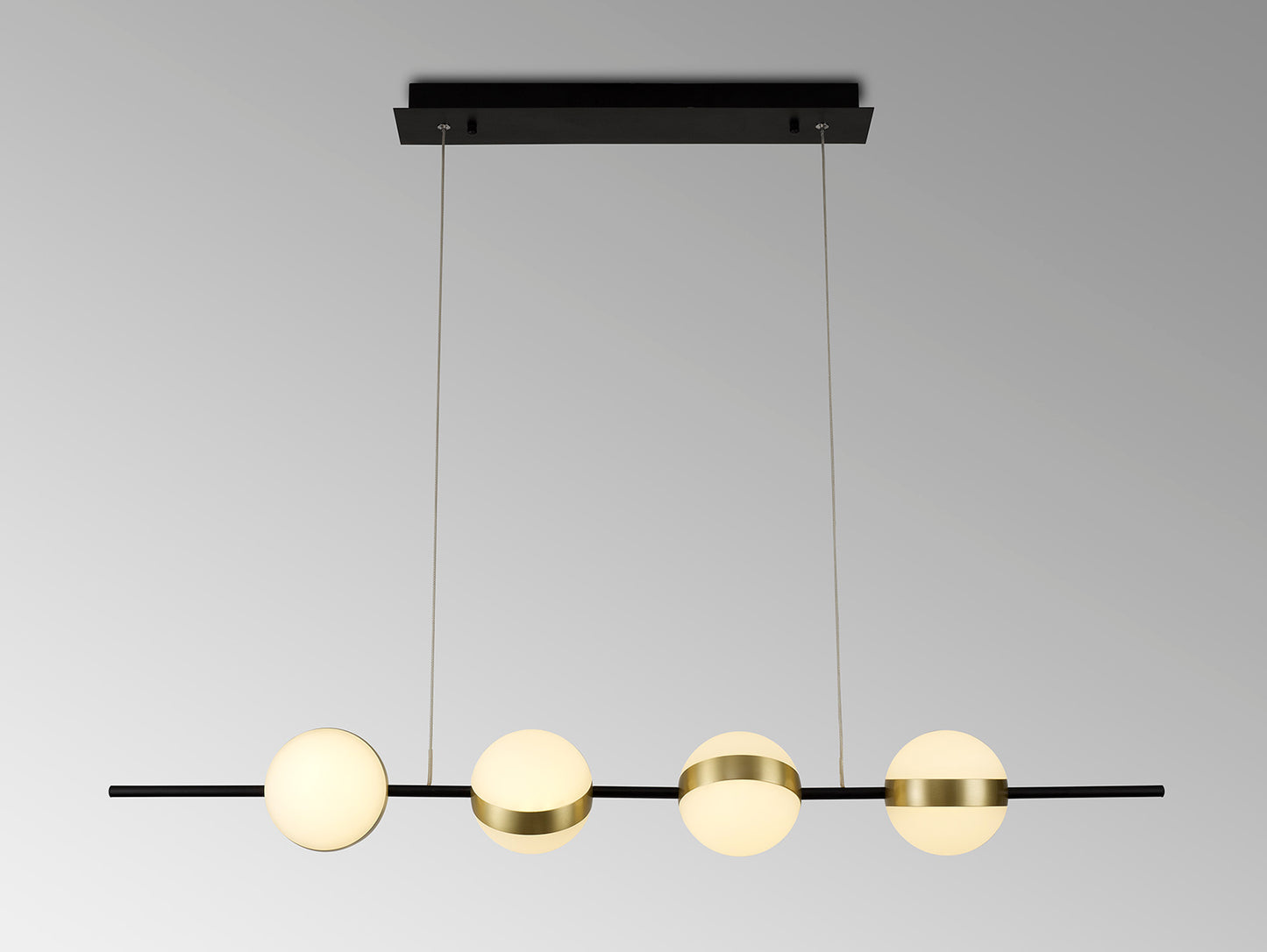 Cuba Linear Pendant 4 Light, 32W LED, 3000K, 2400lm, Gold/Black, 3yrs Warranty by Mantra